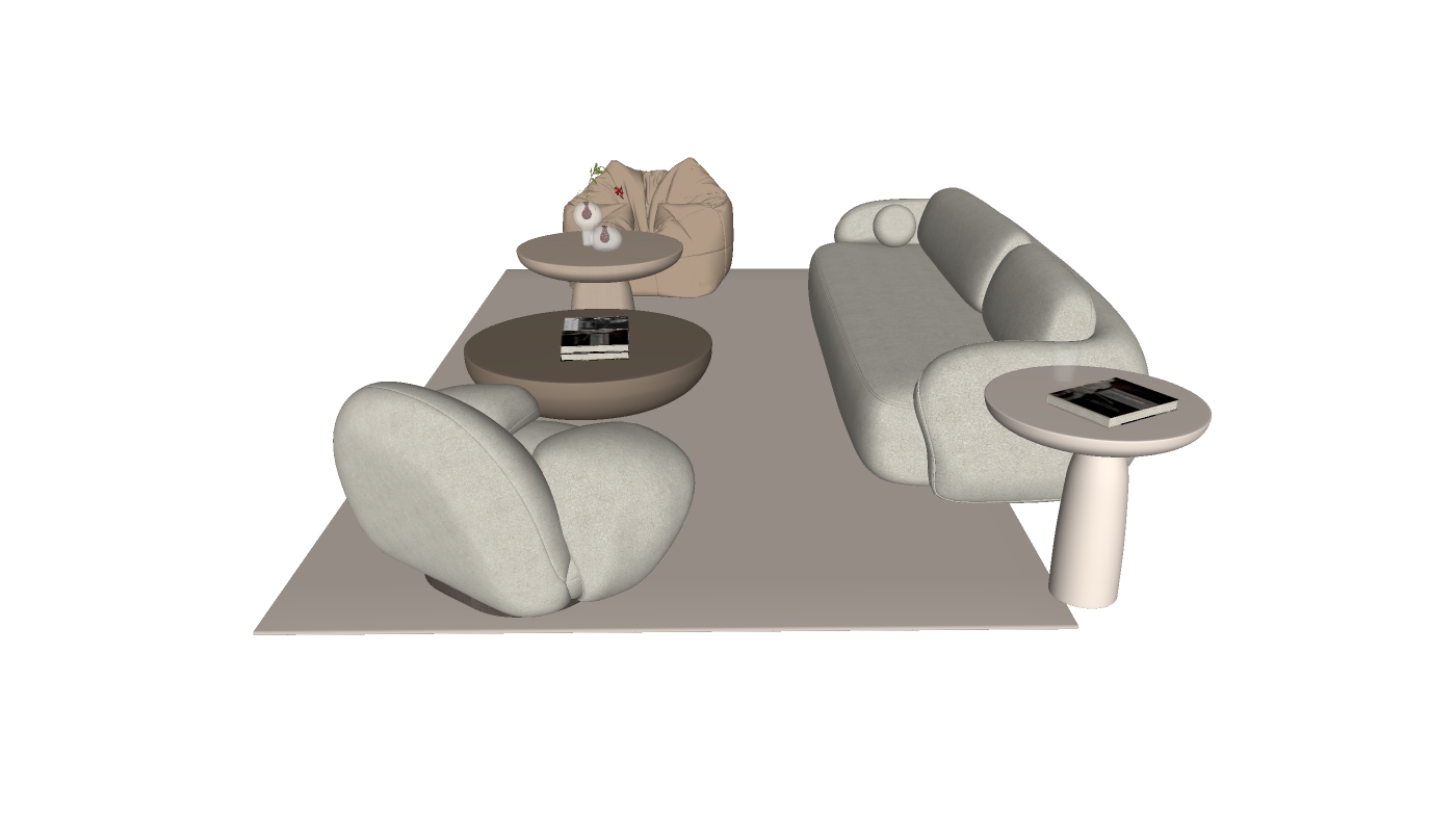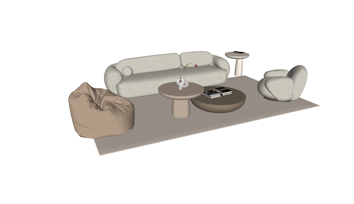 • 360. Model Sketchup bộ sofa cong phong cách Organic bọc vải boucle