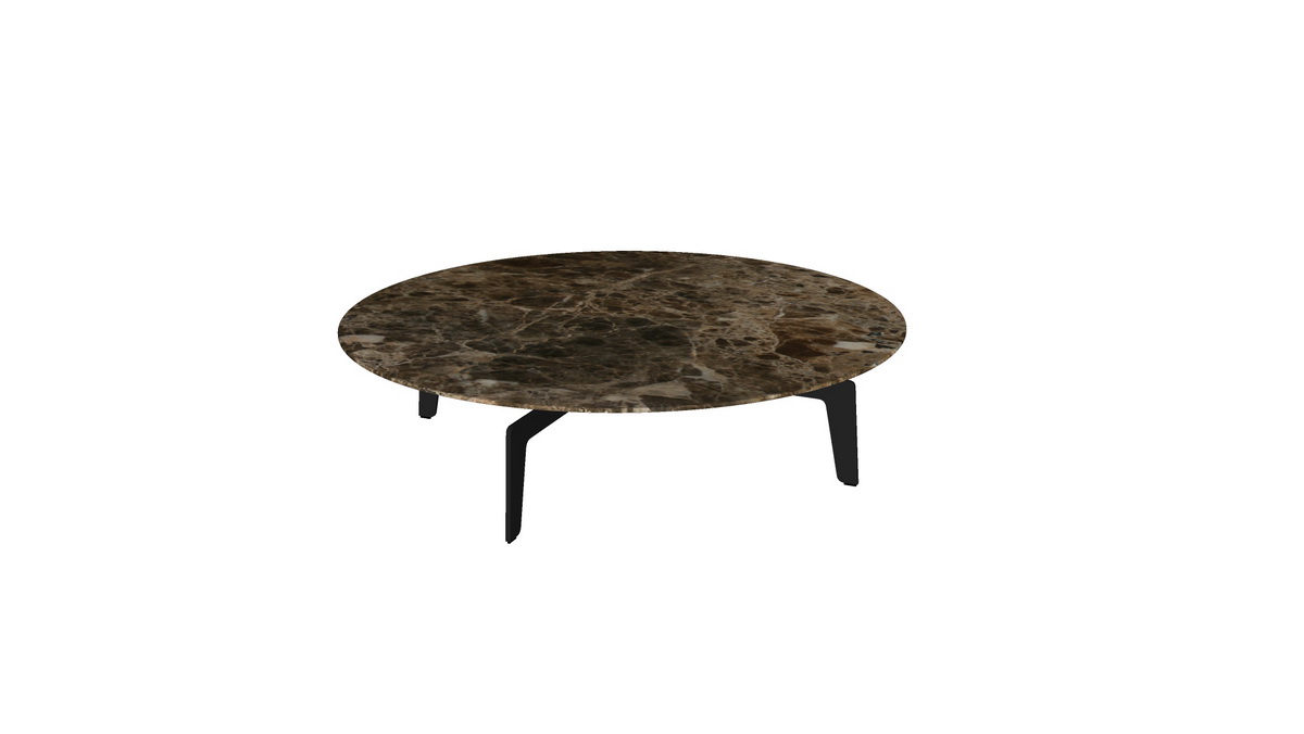 Chi tiết kỹ thuật: Bàn có kích thước đường kính khoảng 1,2m, chiều cao 0,4m. Đá được sử dụng là loại đá marble cao cấp, chân bàn làm từ thép phủ sơn tĩnh điện, đảm bảo sự bền đẹp và chống gỉ sét qua thời gian.