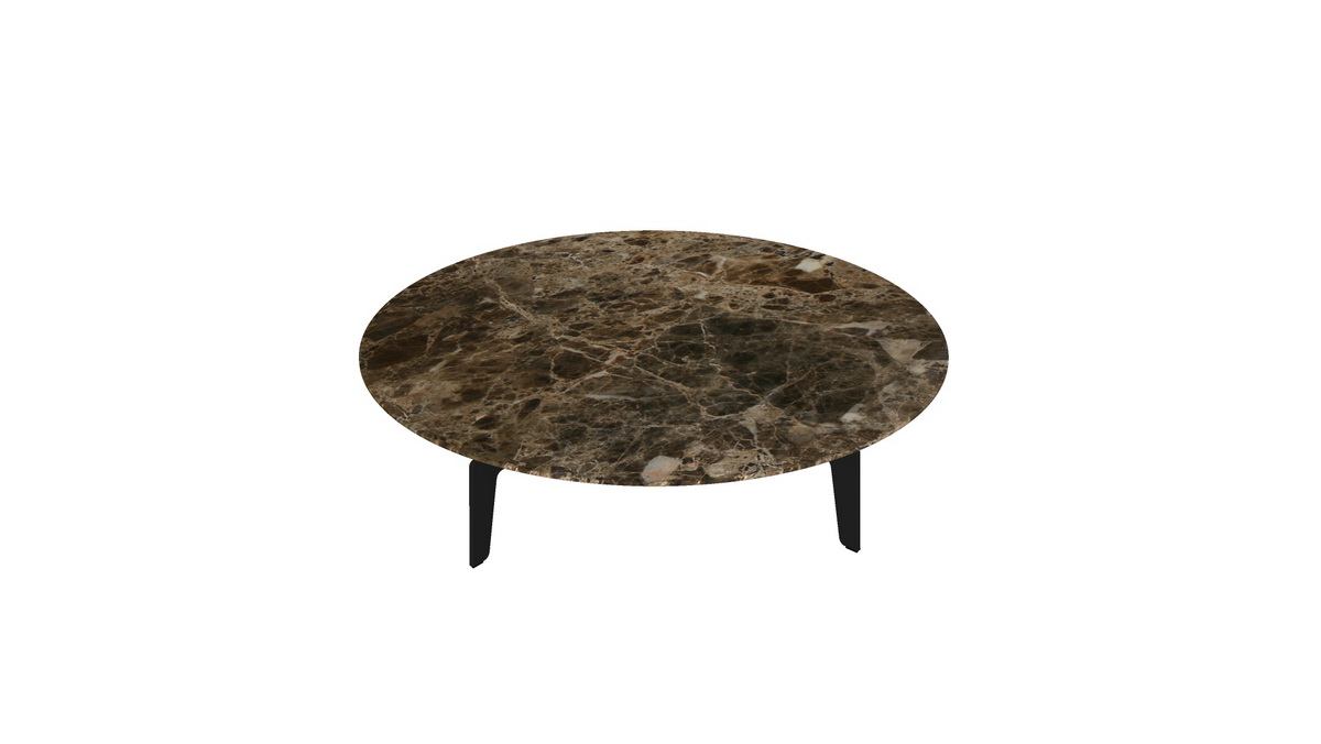 Bàn đá tròn trong hình ảnh được thiết kế tinh tế, thể hiện sự hiện đại và đẳng cấp. Với bề mặt đá bóng loáng mang màu sắc tự nhiên, sản phẩm này dễ dàng thu hút mọi ánh nhìn. Họa tiết đá tự nhiên kết hợp với chân bàn kim loại vững chắc tạo nên một tổng thể hoàn hảo. Sự kết hợp giữa màu sắc nâu đậm của mặt đá cùng chân bàn màu đen tạo ra sự tương phản tinh tế nhưng không kém phần hài hòa.