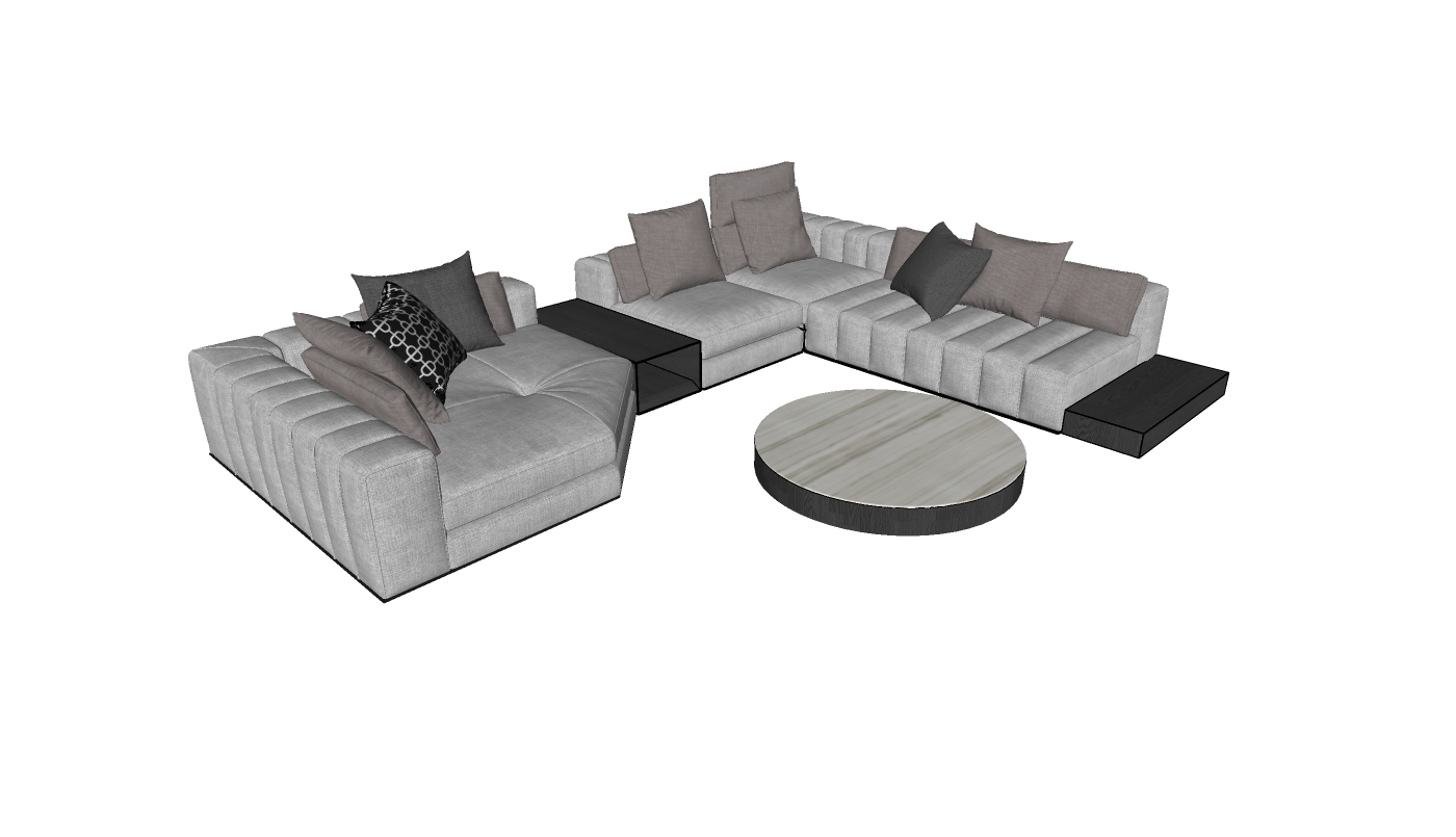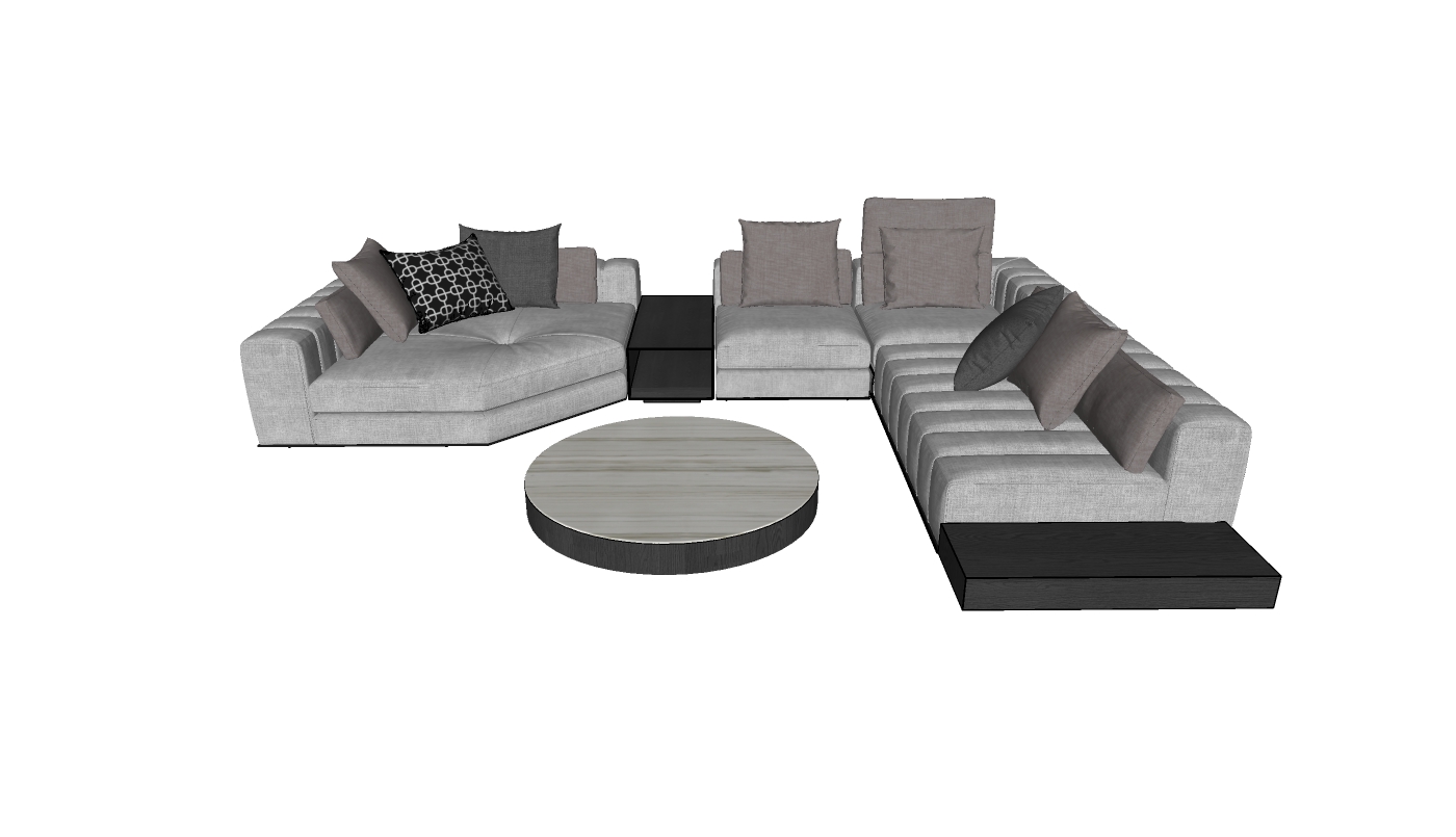 Bộ ghế sofa này được thiết kế theo dạng chữ U với màu xám trung tính, tạo cảm giác thoải mái và dễ dàng phối hợp với nhiều phong cách trang trí nội thất khác nhau. Các đệm ghế có vẻ ngoài êm ái, đi kèm với những chiếc gối tựa đa dạng về kích thước và màu sắc, tạo điểm nhấn tinh tế cho tổng thể sản phẩm.