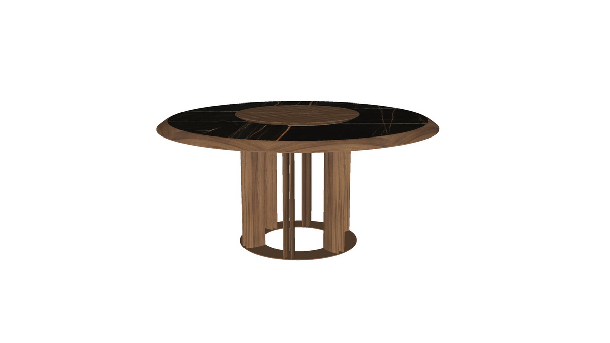 Bàn xoay tròn không chỉ mang lại vẻ đẹp thẩm mỹ cho không gian mà còn tối ưu hóa trải nghiệm sử dụng với khả năng xoay 360 độ. Bề mặt đá cẩm thạch vân mây tối, kết hợp với vân gỗ tự nhiên, tạo ra sự cân bằng lý tưởng giữa công năng và thẩm mỹ.