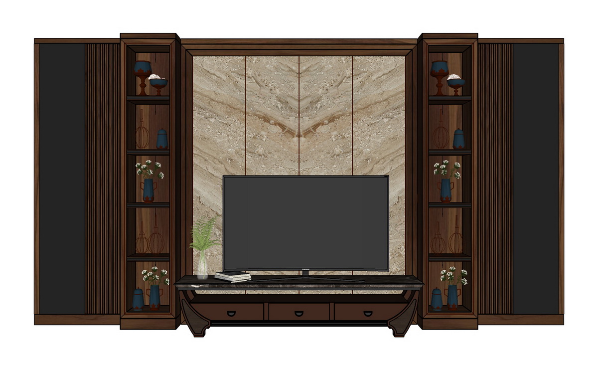 38. Tải miễn phí model sketchup hệ vách tv tân cổ điển gỗ óc chó phối đá xuyên sáng đẳng cấp