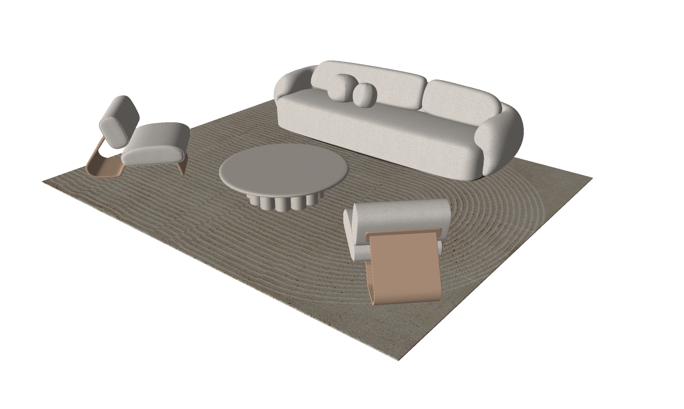 • 388. Thư viện SketchUp bộ sofa cong mềm mại và bàn trà tròn phong cách tối giản