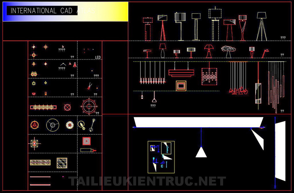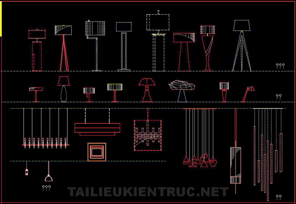 Tài liệu này cung cấp một bộ sưu tập đầy đủ các sơ đồ thiết kế liên quan đến kiến trúc và xây dựng, với các hình ảnh chi tiết của nhiều loại đèn và hệ thống chiếu sáng.