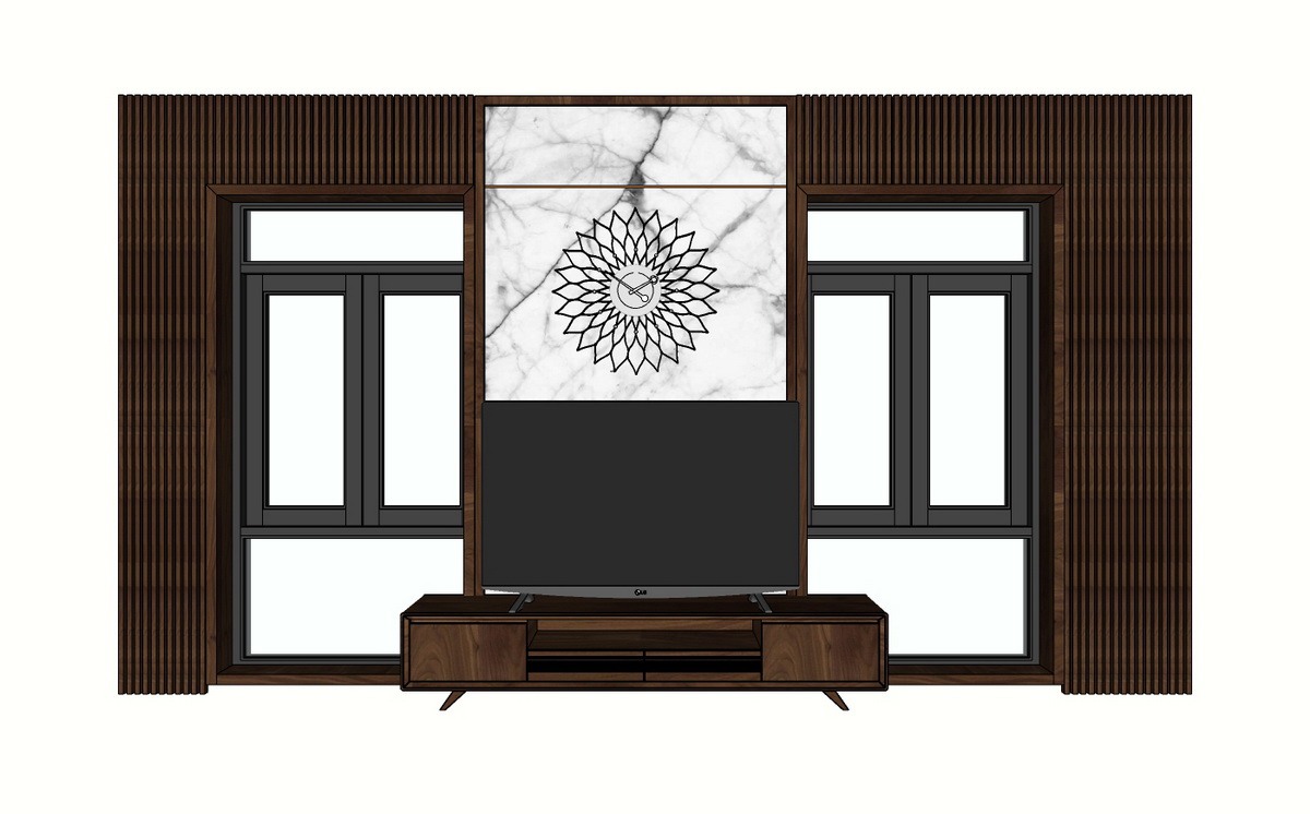 Tài liệu này cung cấp một cái nhìn tổng quát về bộ thiết kế nội thất hiện đại với tích hợp TV và trang trí tường, lý tưởng cho không gian sống hiện đại.