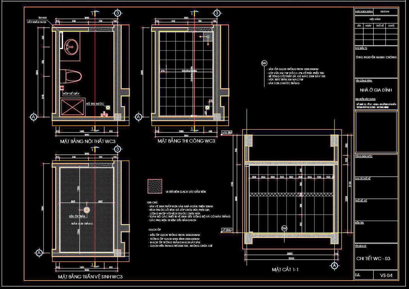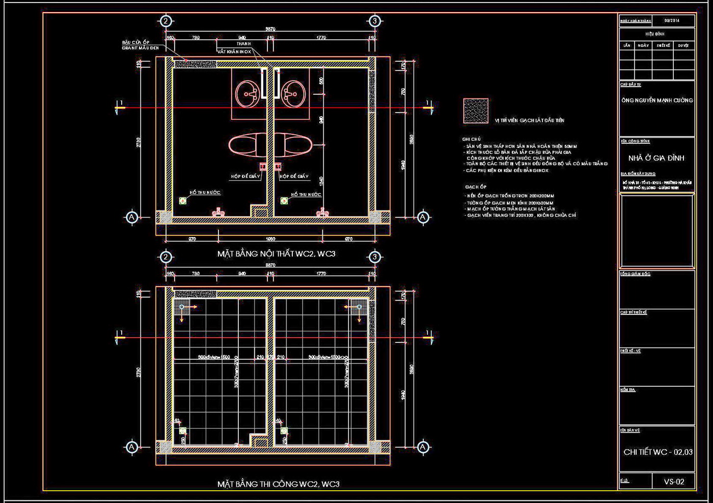 Bản vẽ chi tiết này bao gồm các mặt bằng nội thất và thi công rõ ràng, với các kích thước và ký hiệu được chú thích cẩn thận. Các bản vẽ được trình bày một cách khoa học, giúp người xem dễ dàng theo dõi và hiểu rõ cách sắp xếp các chi tiết bên trong không gian vệ sinh.