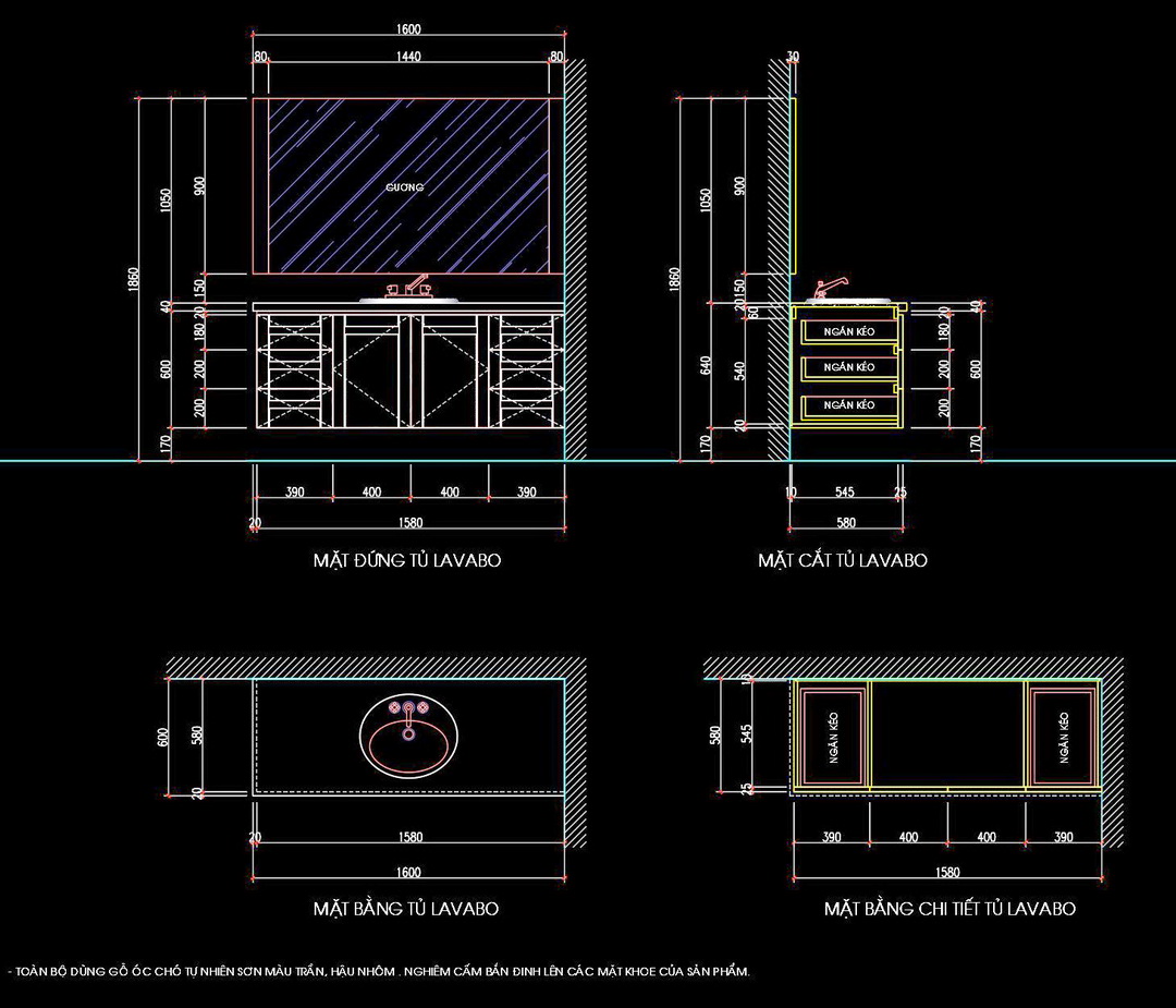 Tài liệu này cung cấp bản vẽ chi tiết thiết kế cho tủ lavabo, giúp các nhà thiết kế và thi công có được cái nhìn tổng quan và chính xác về sản phẩm.