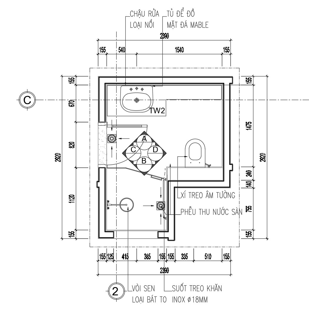 Tài liệu này cung cấp một bản vẽ chi tiết về thiết kế phòng vệ sinh kích thước 2400x3000mm. Đây là một tài liệu quan trọng dành cho các kỹ sư, kiến trúc sư và nhà thầu trong việc thiết kế và thi công.