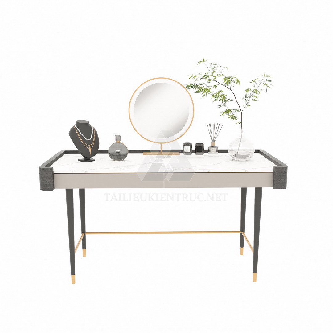 Ứng dụng trong thực tế, mẫu bàn trang điểm này không chỉ mang đến giá trị thẩm mỹ cao mà còn rất thực dụng. Với khả năng tùy chỉnh và tích hợp dễ dàng, sản phẩm phù hợp cho cả những dự án thiết kế nhà ở và không gian thương mại. Các chuyên gia trong lĩnh vực kiến trúc và xây dựng sẽ tìm thấy nguồn cảm hứng từ thiết kế hiện đại và tinh tế này.