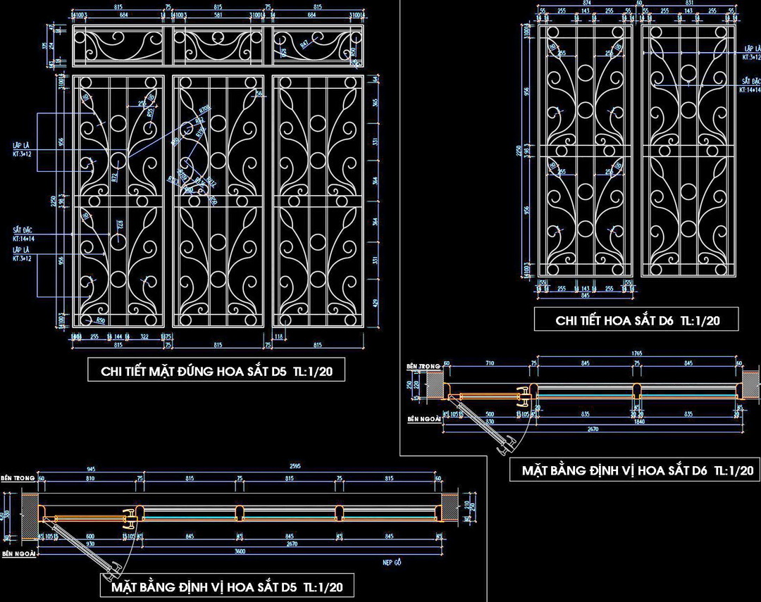 Bản vẽ chi tiết hoa sắt vách kính miễn phí