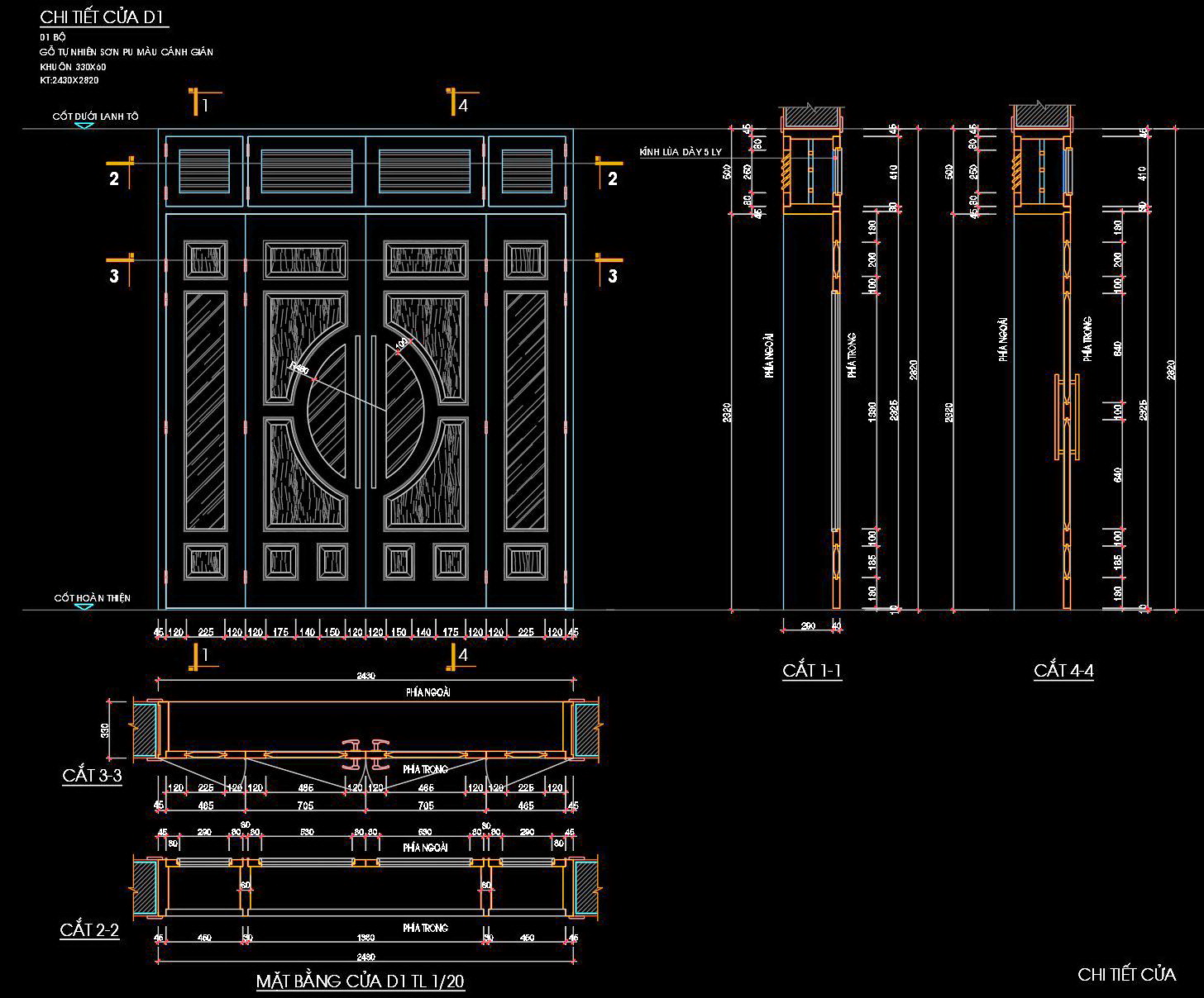 Tài liệu này cung cấp một cái nhìn chi tiết về thiết kế cửa hiện đại sử dụng gỗ tự nhiên sơn PU màu cánh gián, với kích thước cụ thể là 2430x3280mm. Đây là tài liệu hướng dẫn thiết kế chuyên nghiệp, mang lại nhiều tiện ích cho người làm trong ngành kiến trúc và xây dựng.