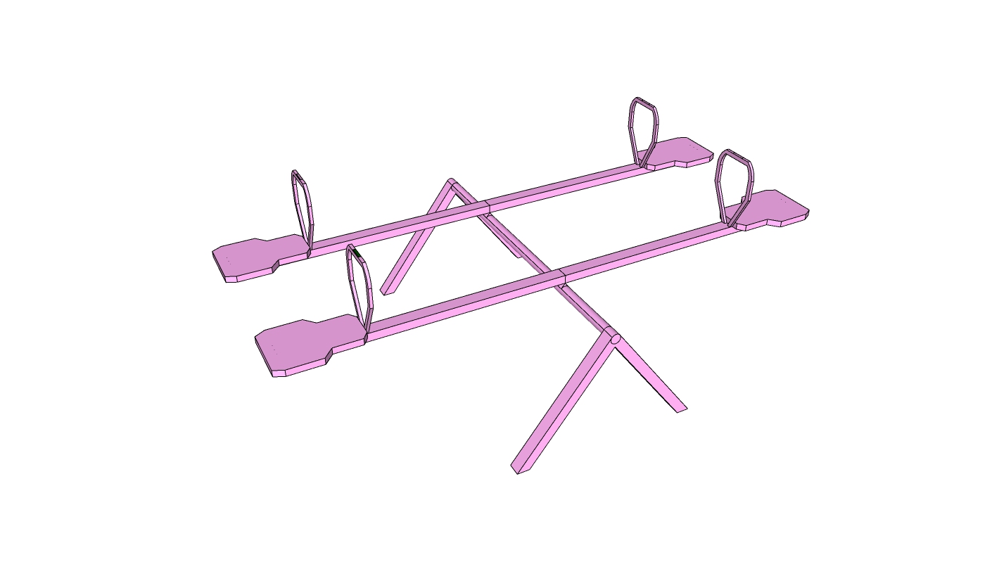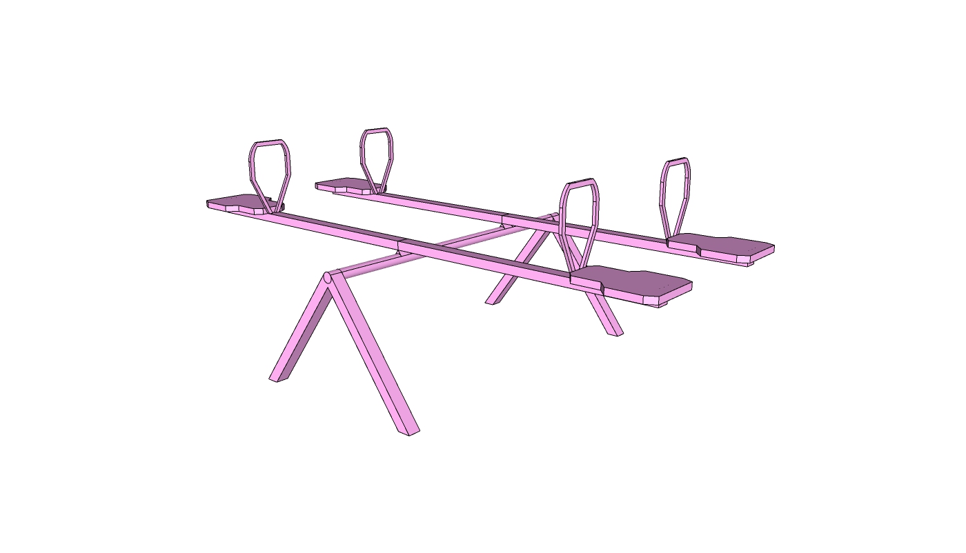 Trong hai hình ảnh được cung cấp, chúng ta có thể thấy bập bênh với cấu trúc gồm hai ghế ngồi, mỗi ghế có gác tay bảo vệ. Các thanh ngang và chân khung được bố trí hài hòa, tạo nên sự vững chắc cần thiết, đảm bảo an toàn trong quá trình sử dụng. Màu hồng tươi sáng của bập bênh tạo nên sự bắt mắt và phù hợp với không gian vui chơi trẻ em.