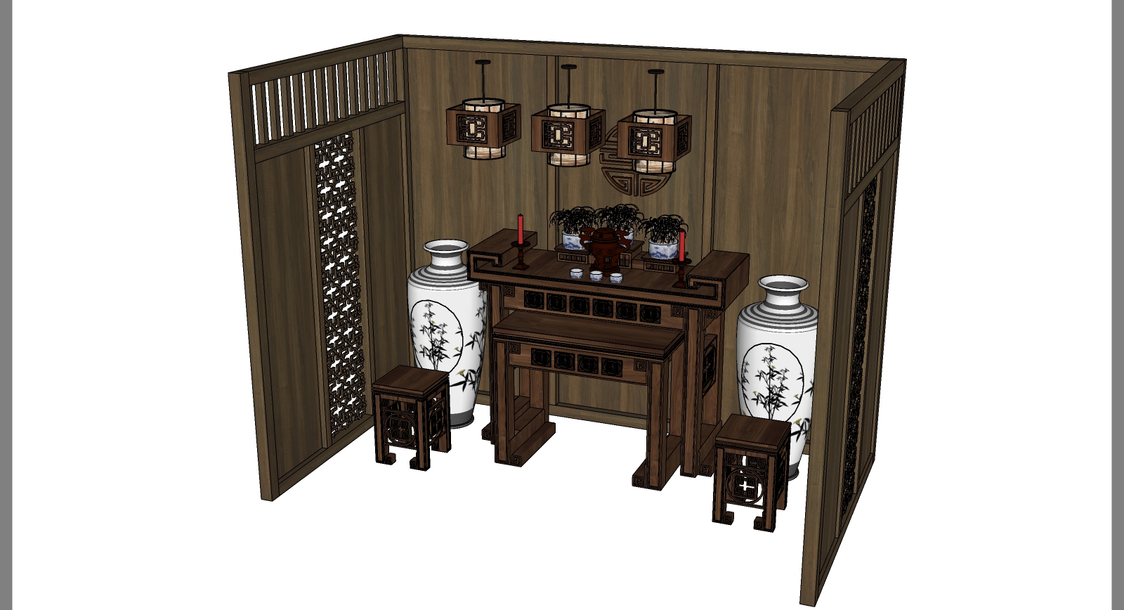 Download Free Full Scene Model SketchUp Không gian phòng thờ sang trọng