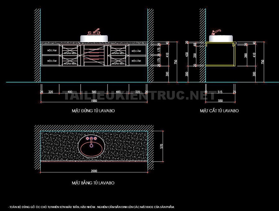 Tài liệu này cung cấp các bản vẽ kỹ thuật chi tiết cho tủ lavabo, giúp hỗ trợ các chuyên gia trong việc thiết kế và thi công một cách hiệu quả.