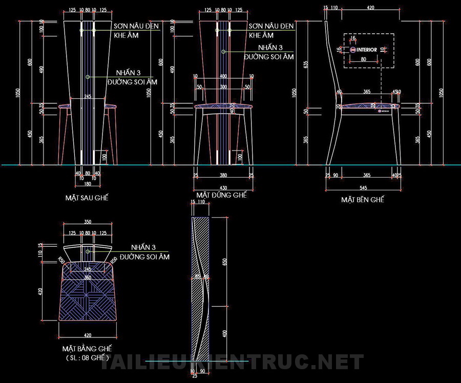 Tài liệu này cung cấp một cái nhìn chi tiết và toàn diện về thiết kế ghế qua các bản vẽ kỹ thuật chuyên nghiệp, hỗ trợ các nhà thiết kế và kiến trúc sư trong quá trình làm việc.