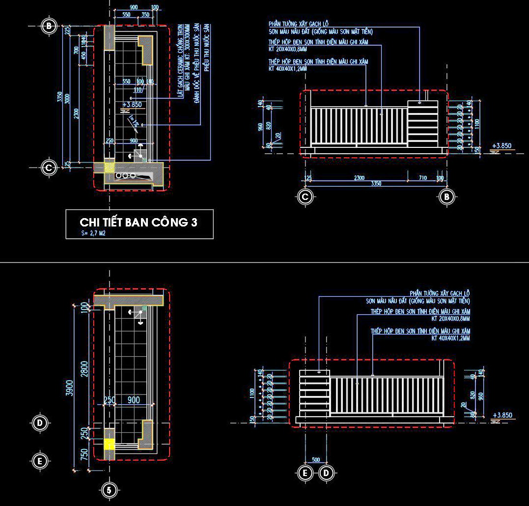 Các bản vẽ đi kèm chi tiết về kích thước từng phần của ban công, định vị các điểm gắn kết và phương thức lắp ráp. Với sự minh bạch trong thiết kế, quá trình lắp đặt sẽ diễn ra suôn sẻ hơn và tránh được các sai sót không mong muốn.