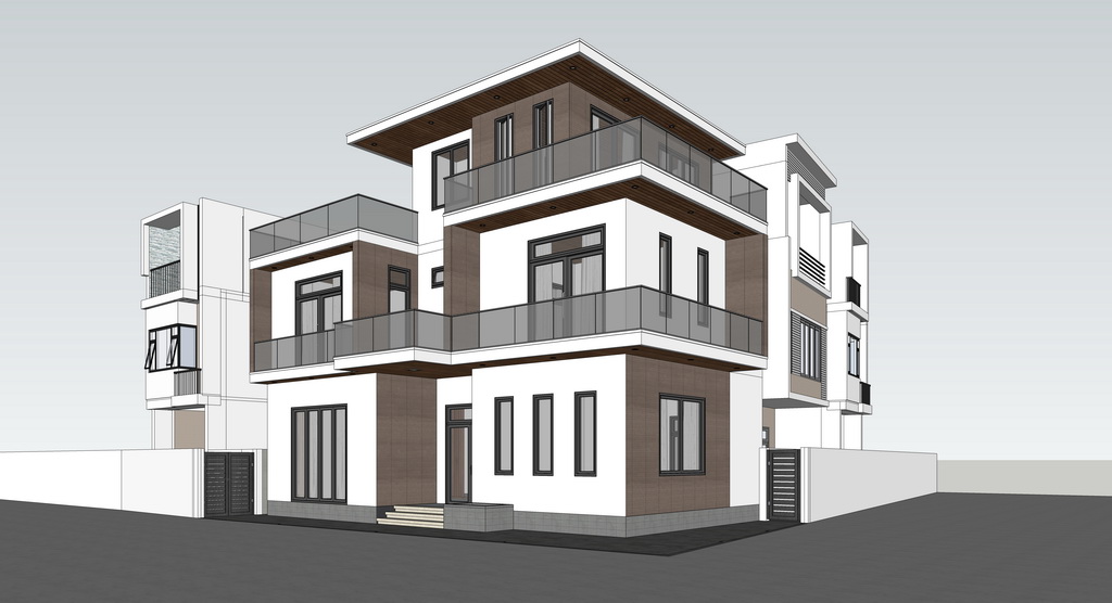 8. Phối cảnh biệt thự 3 tầng hiện đại file sketchup tác giả Ninh Minh Duc