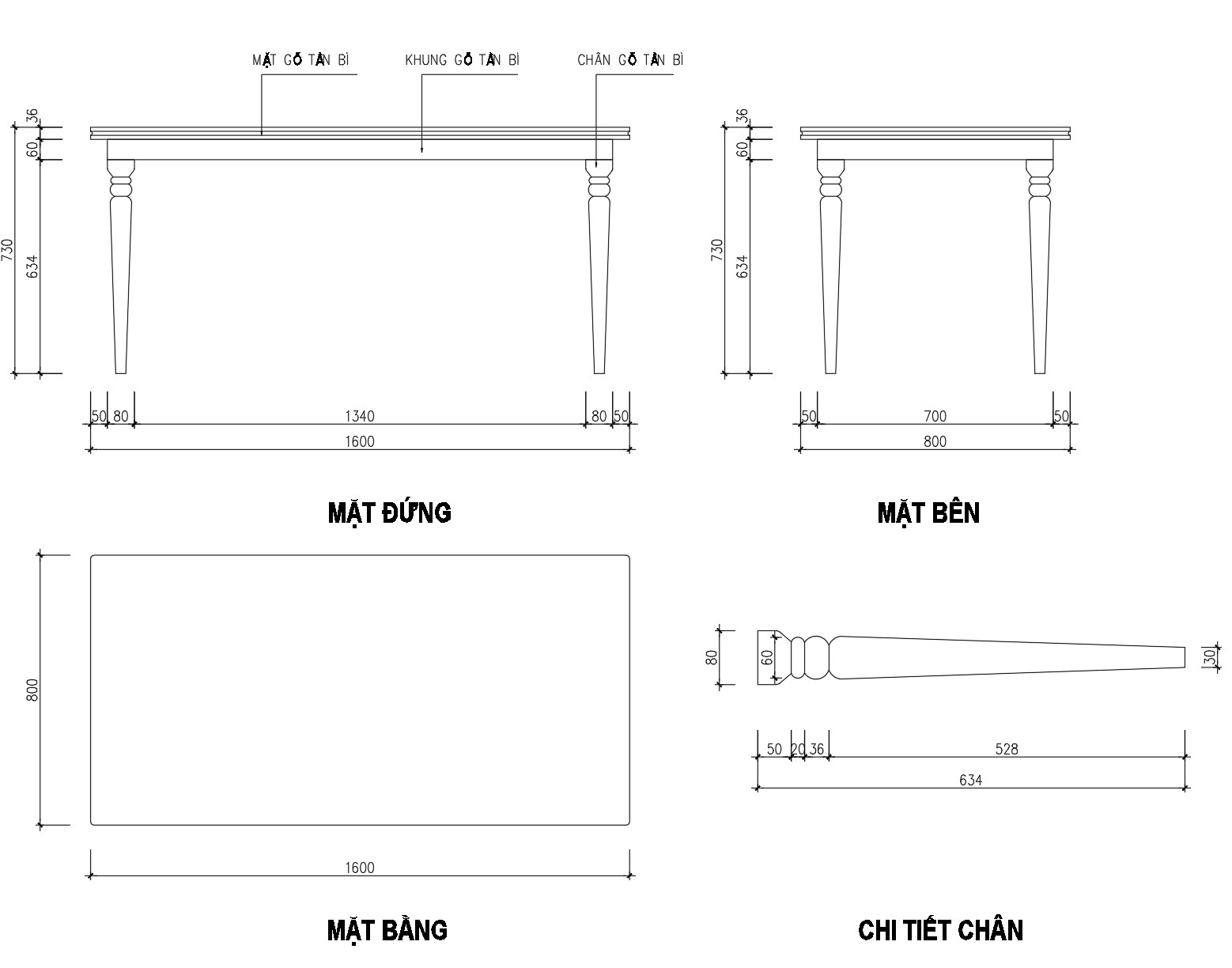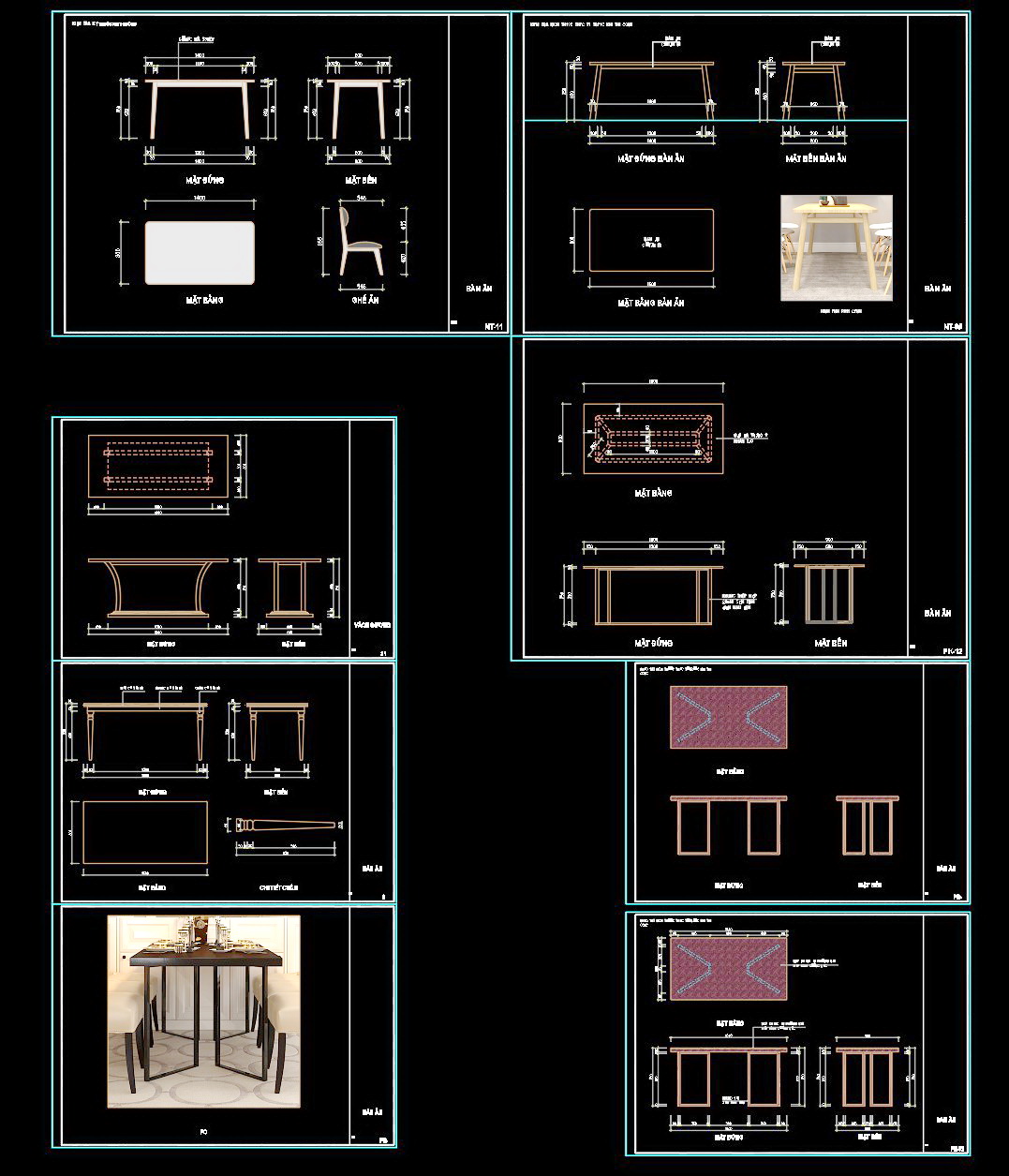 Tài liệu này cung cấp một cái nhìn chi tiết về các bản vẽ kỹ thuật của bàn ăn, giúp ích cho việc thiết kế và thi công trong lĩnh vực nội thất.