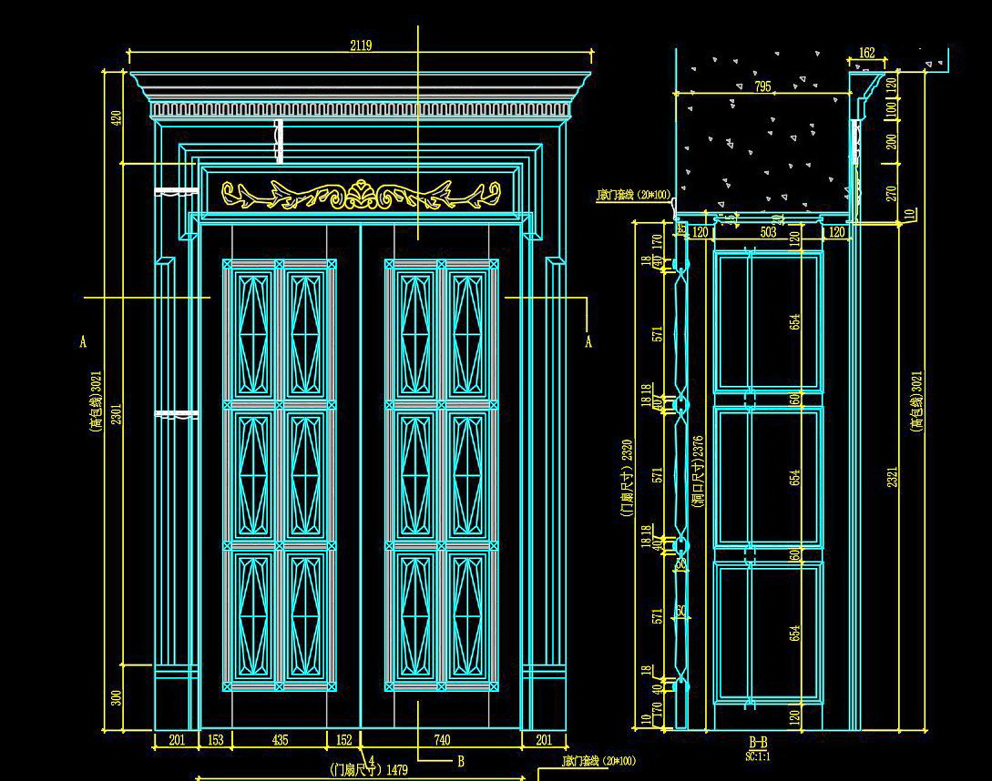 Tài liệu này cung cấp bản vẽ chi tiết của một mẫu cửa tinh xảo, với sự tập trung vào thiết kế cổ điển và đường nét tỉ mỉ. Được thiết kế chuyên nghiệp, tài liệu hướng đến việc hỗ trợ các chuyên gia trong ngành kiến trúc và xây dựng tối ưu hóa thiết kế của họ.