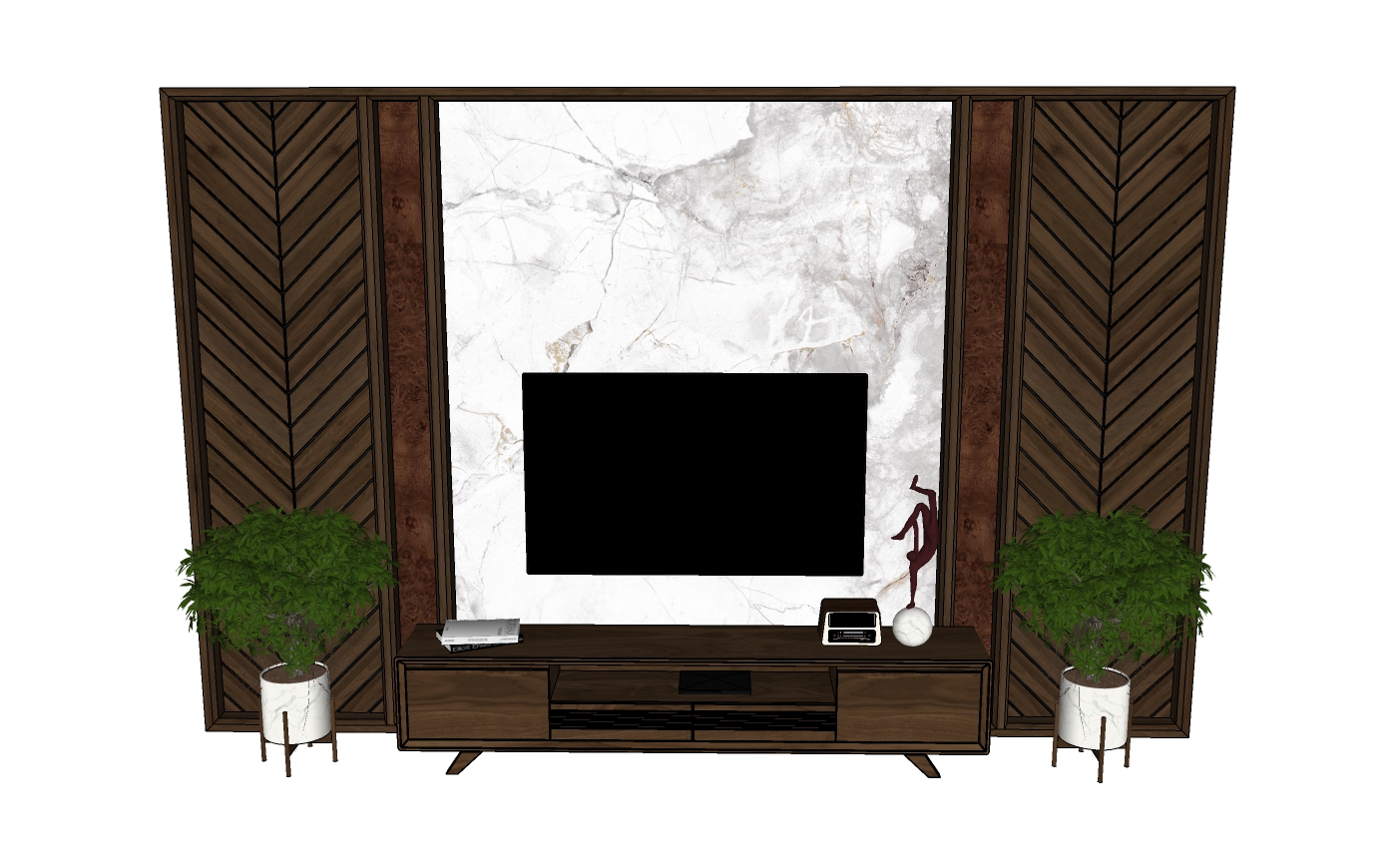 Model SketchUp kệ tivi phong cách Luxury phối vách gỗ xương cá và đá tự nhiên (Tải miễn phí)