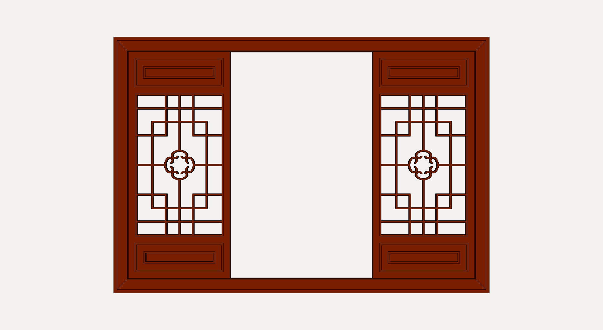 Hình ảnh đầu tiên thể hiện một cửa sổ gỗ truyền thống với khung chữ nhật bằng gỗ. Thiết kế cửa có hoa văn mang nét văn hóa Á Đông, gồm các đường nét và họa tiết tinh tế, tuy đơn giản nhưng mang lại vẻ sang trọng và cổ điển. Hình ảnh thứ hai là một phiên bản hoạt hình của mẫu cửa này với các chi tiết tương đồng, nhằm minh họa rõ nét hơn cấu trúc và vẻ đẹp của sản phẩm.
