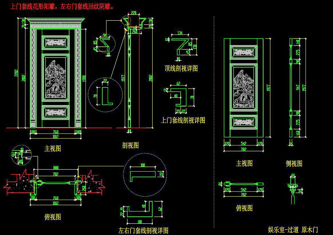 • 90. Thư Viện Autocad Cửa Gỗ 1 Cánh Chạm Khắc Tranh Sơn Thủy Cổ Điển