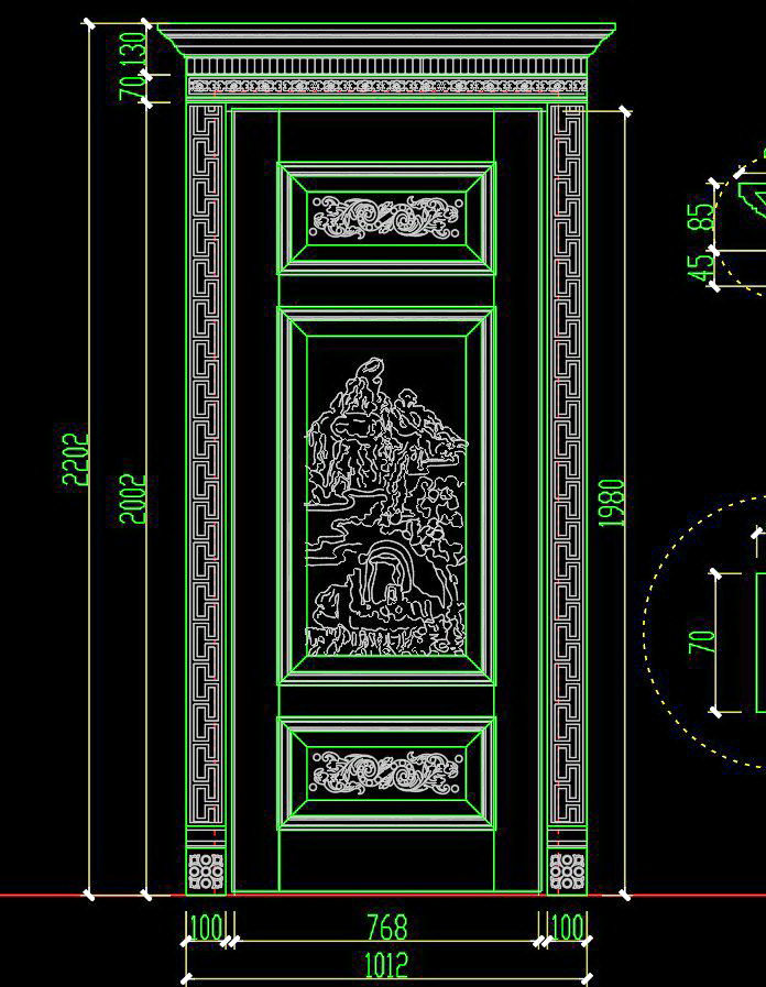 Thư Viện Autocad Cửa Gỗ 1 Cánh Chạm Khắc Tranh Sơn Thủy Cổ Điển