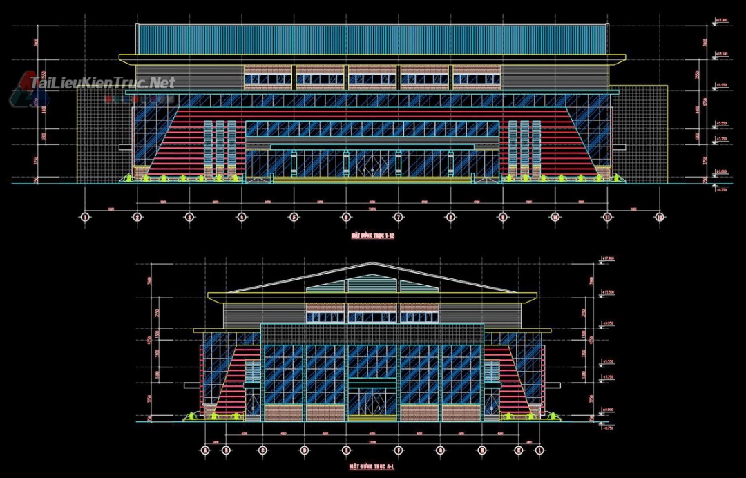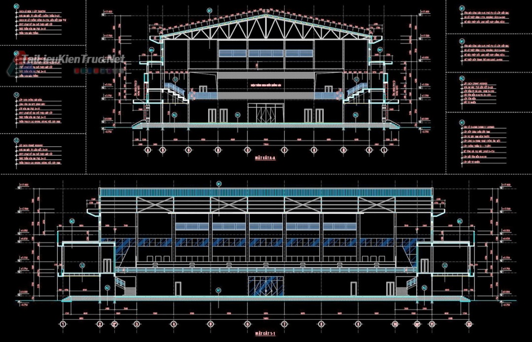 Bộ tài liệu này mô tả giải pháp thiết kế cho một công trình thể thao đa năng hiện đại, đáp ứng đầy đủ các tiêu chuẩn về thi đấu và tổ chức sự kiện. Đây là bộ hồ sơ thực tế, có độ chuẩn xác cao về kỹ thuật, phù hợp để làm tài liệu tham khảo thiết kế hoặc đồ án tốt nghiệp.