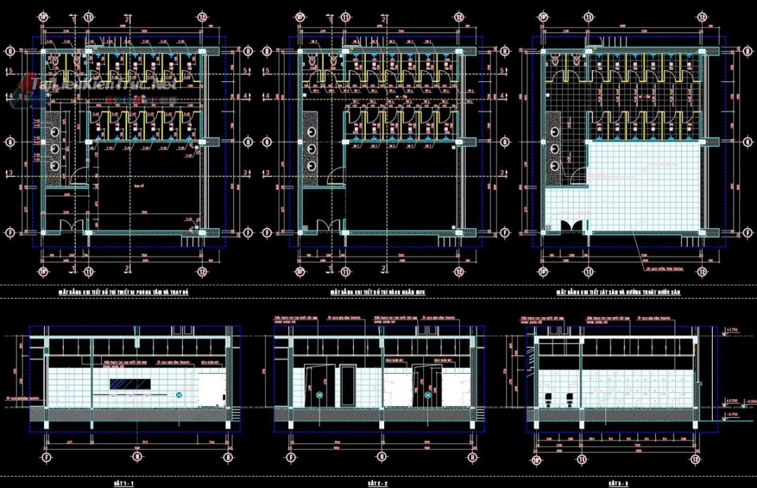 Đầy đủ chi tiết nhỏ: Từ chi tiết ốp đá, vách ngăn vệ sinh đến chi tiết tay vịn đều được triển khai tỉ mỉ, giúp người xem hiểu rõ cách cấu tạo thực tế.