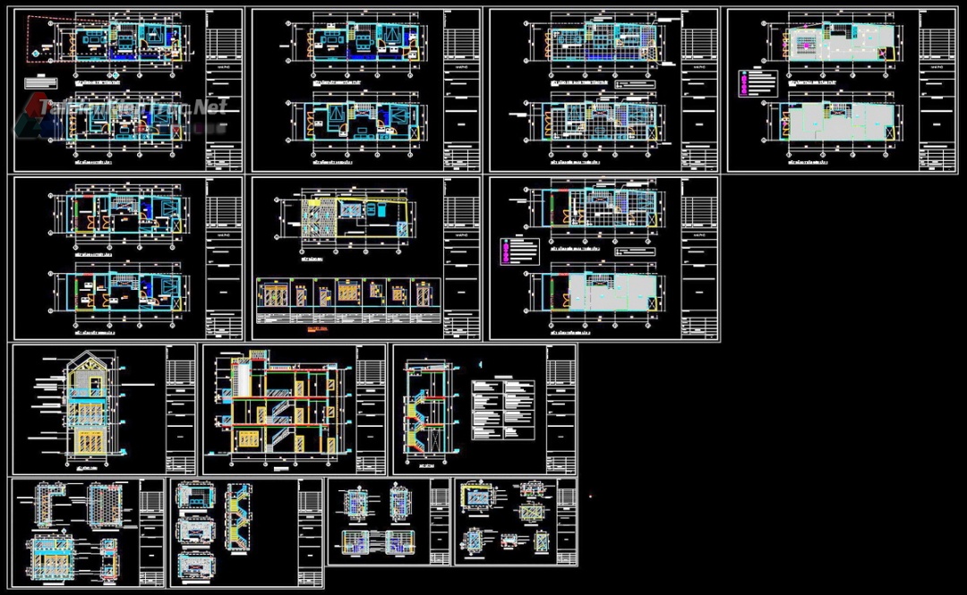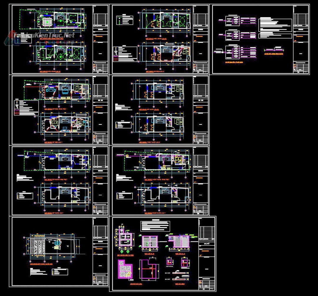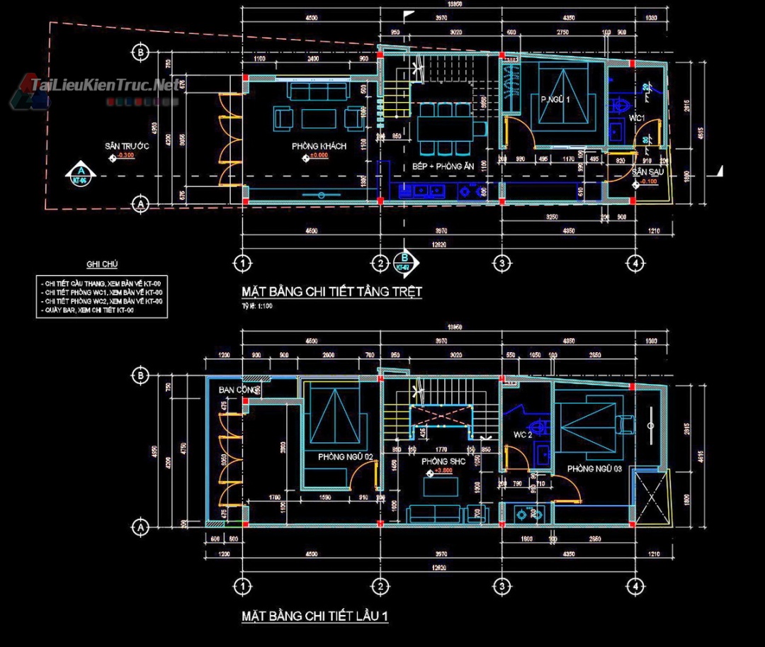 Hồ sơ thiết kế bản vẽ thi công nhà phố 3 tầng diện tích 5x14m 214 full kiến trúc, kết cấu, điện nước