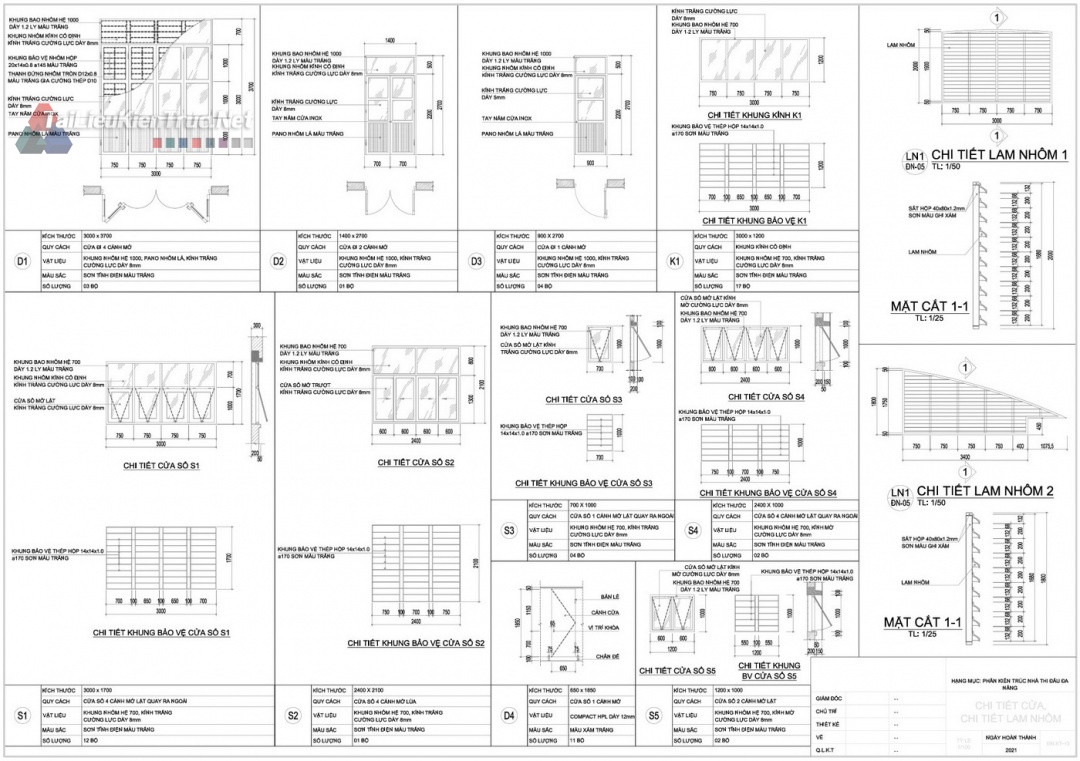 Phần Kiến trúc: Các mặt bằng, mặt đứng, mặt cắt, chi tiết thang, vệ sinh, chi tiết cửa, ram dốc.