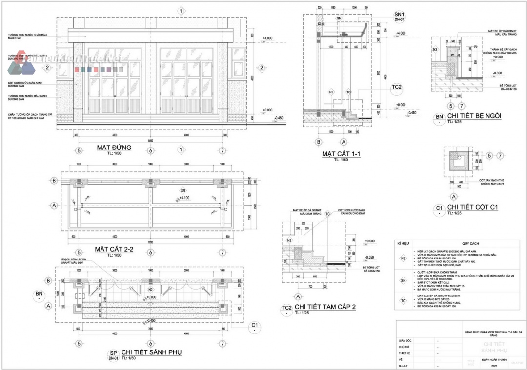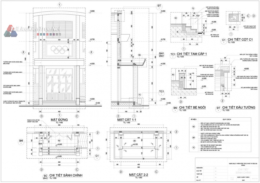 Độ tin cậy cao: Các thông số kỹ thuật, ghi chú vật liệu (bột trét, sơn nước, gạch ốp lát...) được trình bày chuyên nghiệp, đúng quy chuẩn.