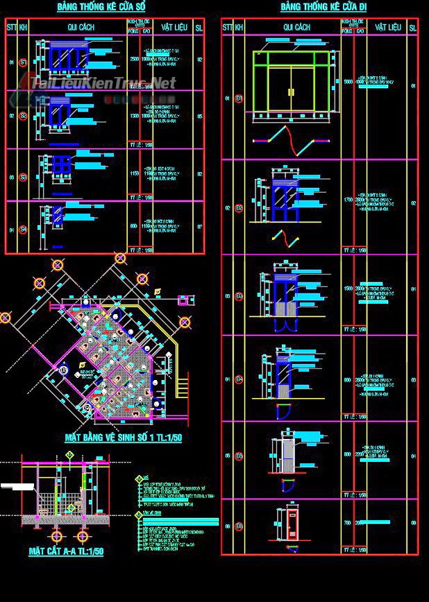 Bảng thống kê cửa: Chi tiết kích thước, vật liệu cho từng loại cửa đi, cửa sổ.