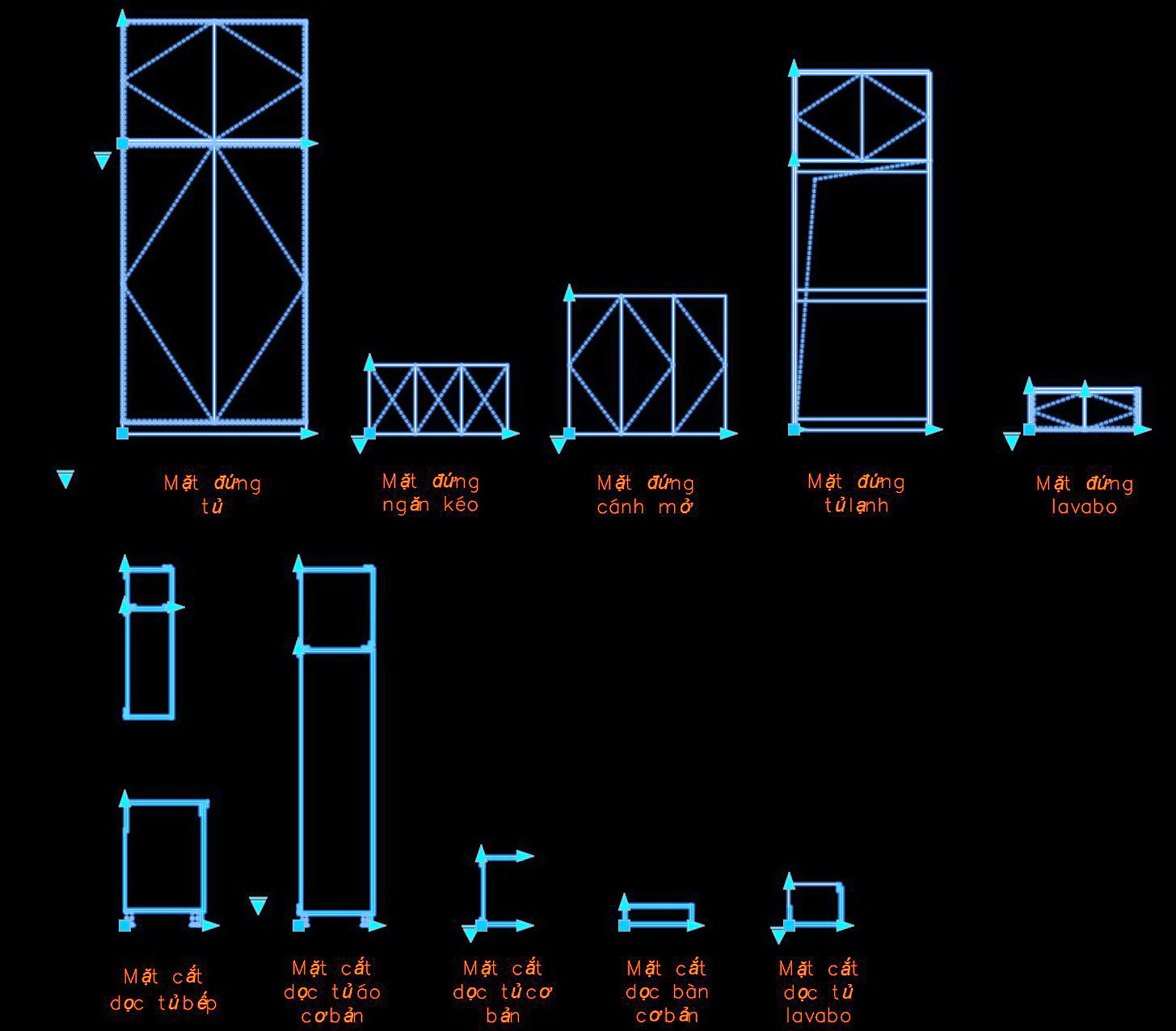 Những bản vẽ này phù hợp để áp dụng trong các dự án thiết kế và thi công nội thất bếp, giúp nhà thầu và kiến trúc sư có được cái nhìn tổng thể về bố trí không gian và logic thiết kế của từng sản phẩm. Chúng cũng là tài liệu tham khảo lý tưởng cho việc giảng dạy và học tập trong các khóa học thiết kế nội thất.