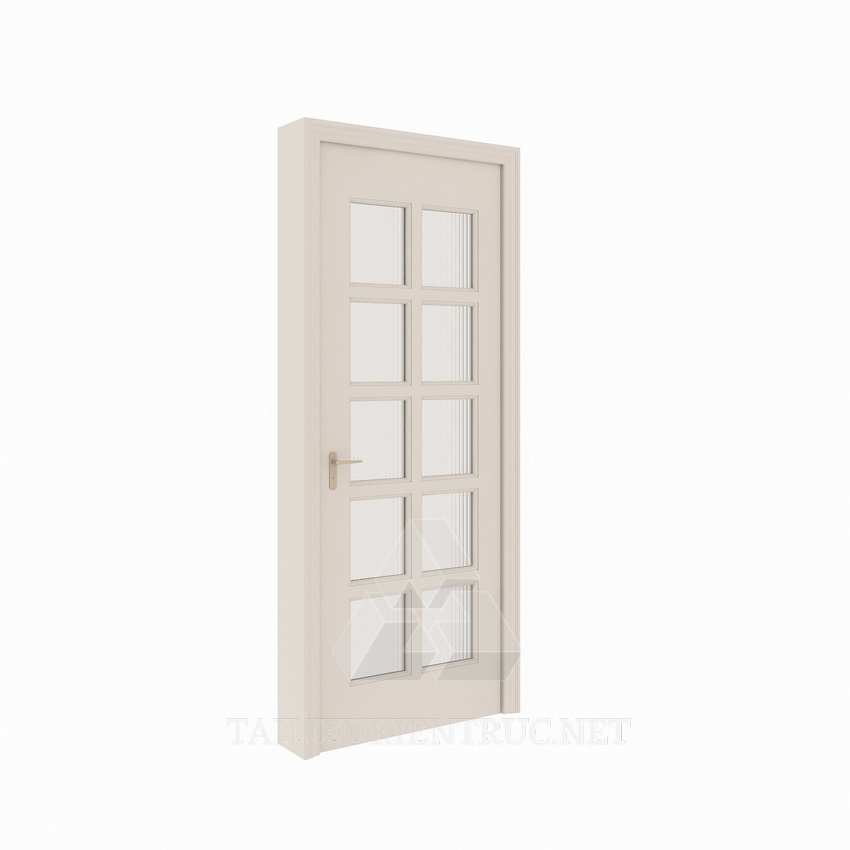 Mẫu cửa kính này nổi bật với cấu trúc chắc chắn, gồm khung gỗ màu trắng tinh tế kết hợp cùng các ô kính vuông, tạo nên vẻ đẹp tối giản nhưng không kém phần sang trọng. Thiết kế này phù hợp cho nhiều không gian khác nhau như nhà ở, văn phòng hay cửa hàng, giúp tối ưu hóa ánh sáng tự nhiên.