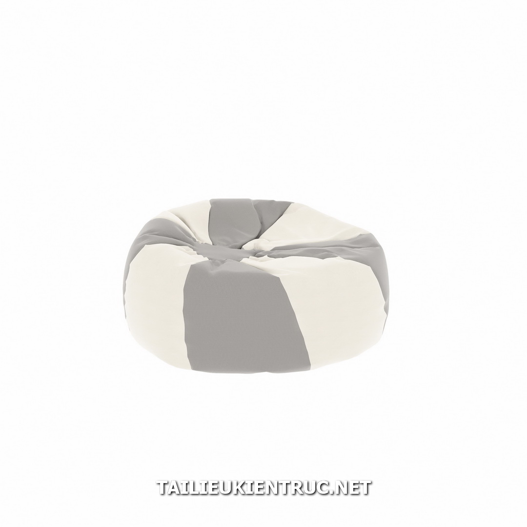 Hình ảnh cho thấy một mẫu ghế lười tròn với thiết kế trơn tru, được làm từ chất liệu mềm mại với hai tông màu xám và trắng xen kẽ, tạo nên một vẻ ngoài tinh tế và trang nhã. Đây là sản phẩm lý tưởng cho nhiều không gian từ phòng khách, phòng ngủ đến khu vực thư giãn ngoài trời.