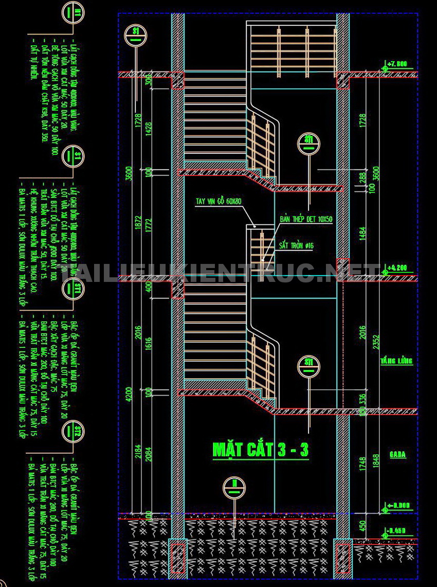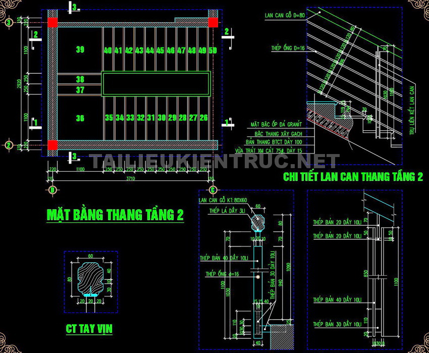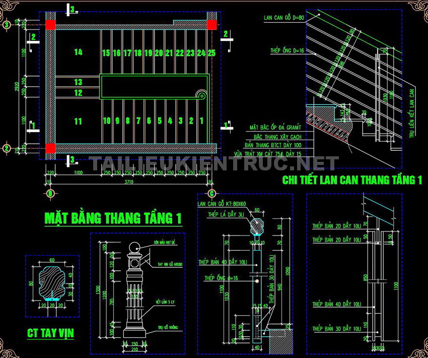Tài liệu này cung cấp bản vẽ chi tiết về thang lan can thép với tay vịn gỗ, một sự kết hợp giữa tính thẩm mỹ và công năng trong ngành kiến trúc xây dựng hiện đại.