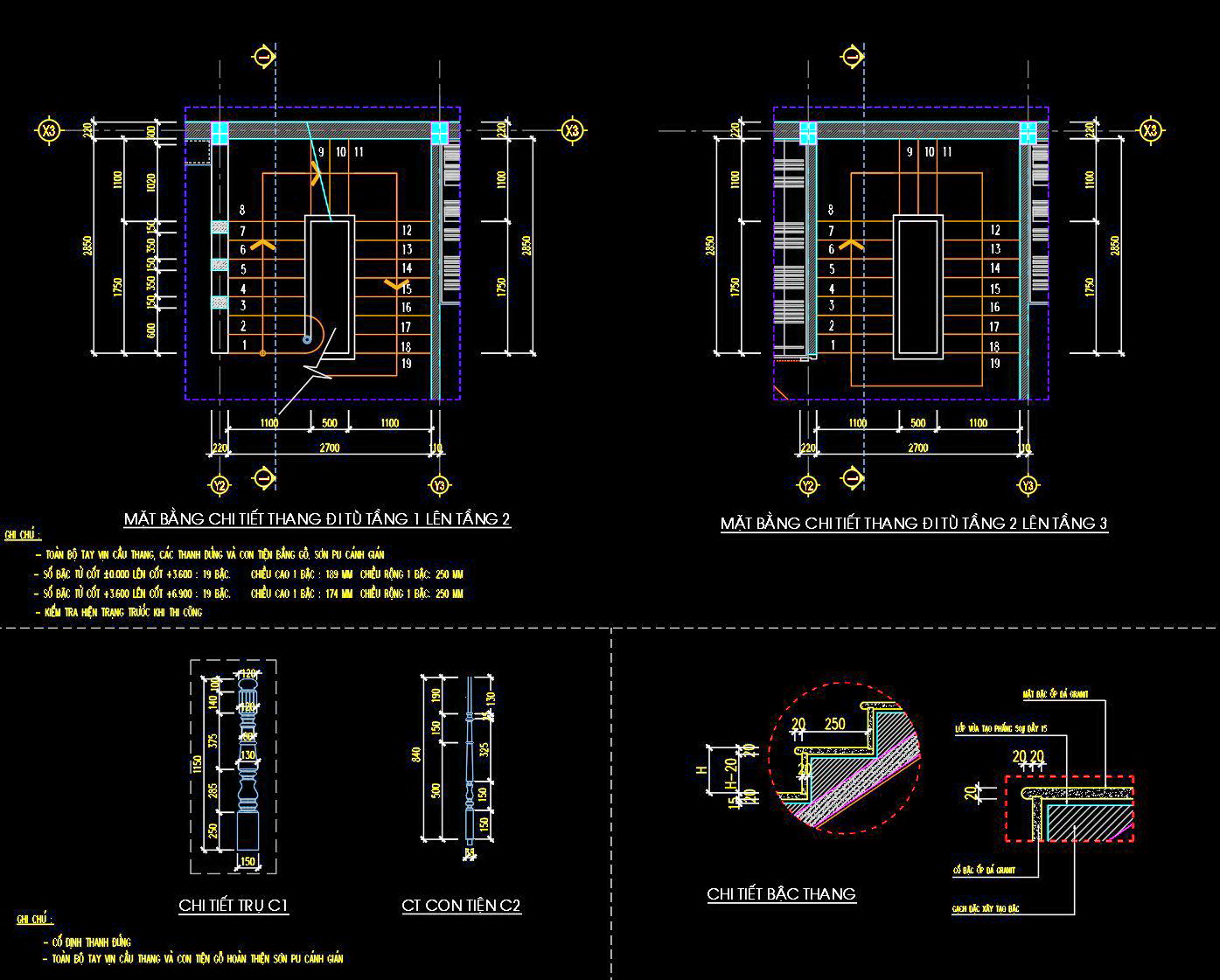 Bản vẽ chi tiết thang lan can con tiện gỗ miễn phí