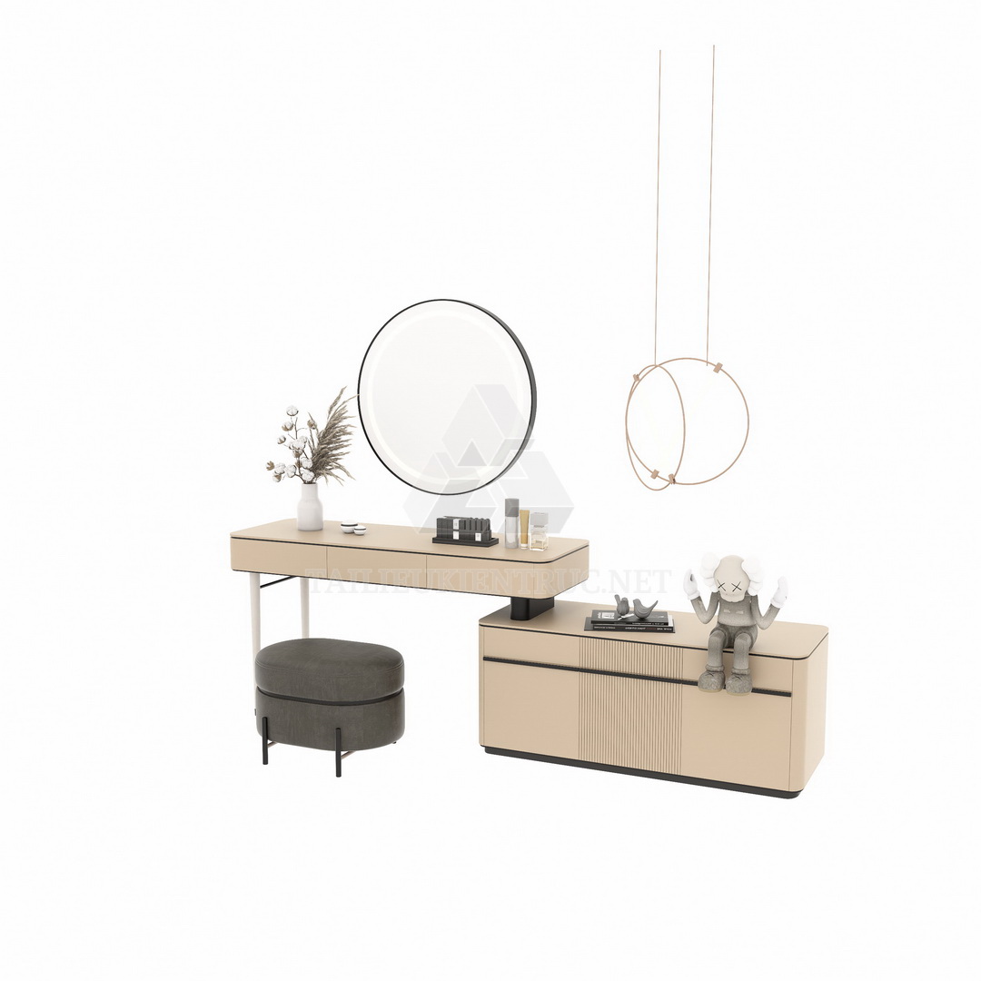 • Tương thích nhiều phần mềm: Định dạng mô hình 3D của bàn trang điểm dễ dàng tích hợp vào các phần mềm thiết kế nội thất phổ biến như AutoCAD, 3ds Max.