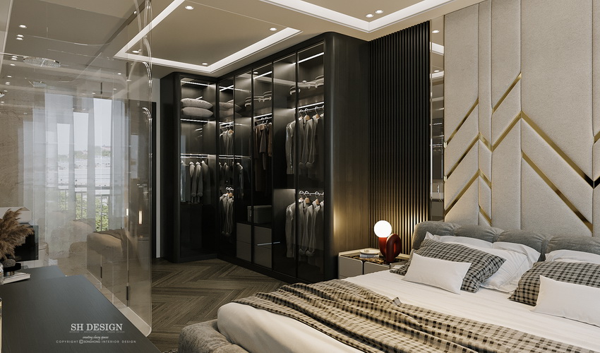 Phòng ngủ được trang bị tủ quần áo kính cường lực, không chỉ giúp mở rộng không gian mà còn tạo cảm giác trẻ trung, hiện đại. Ánh sáng tự nhiên tràn ngập khắp phòng qua hệ thống cửa sổ lớn, kết hợp cùng rèm cửa mềm mại, tạo nên không gian mở thoáng đãng.