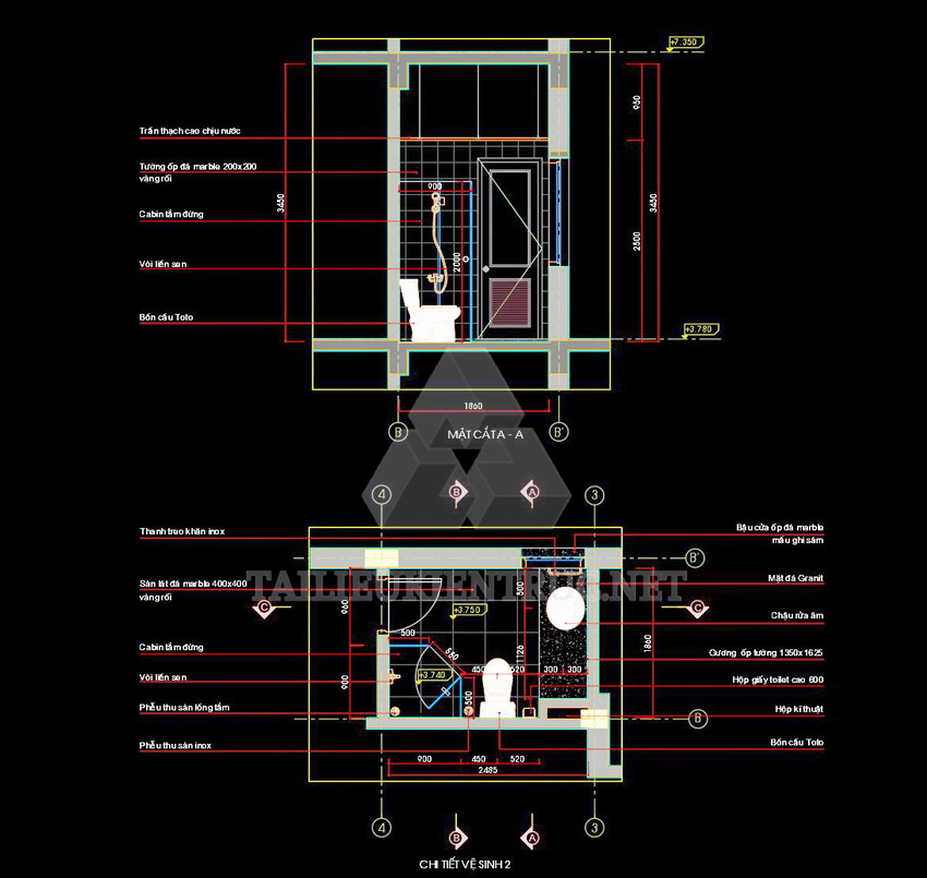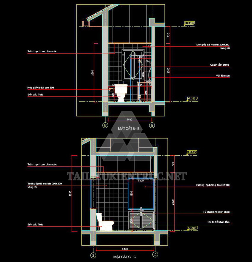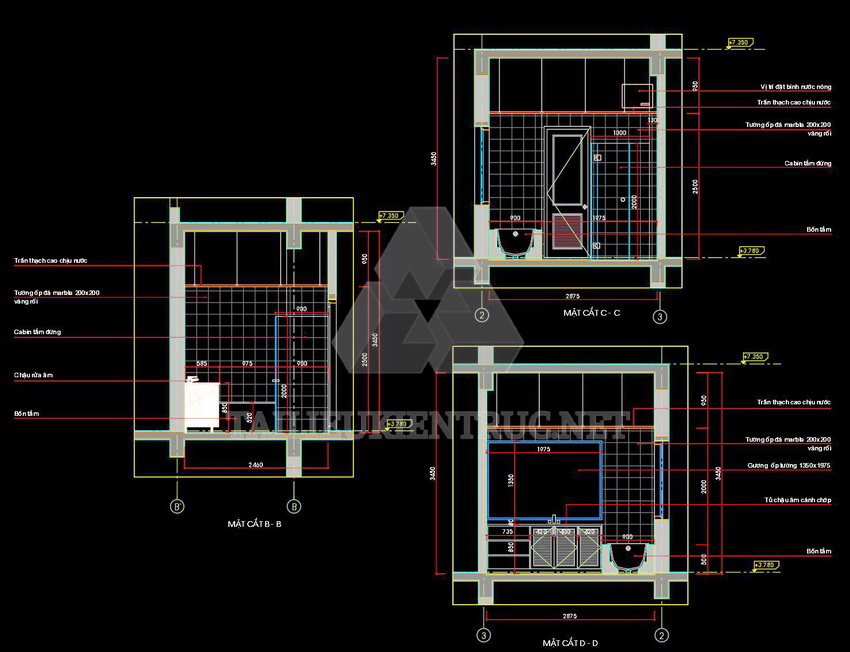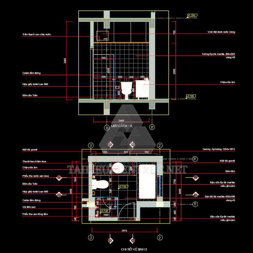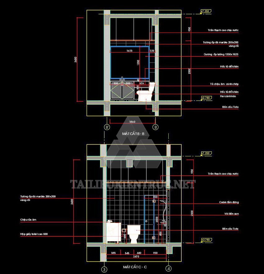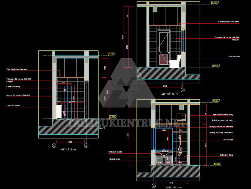 Các bản vẽ này thích hợp cho việc thiết kế nội thất phòng vệ sinh trong các dự án nhà ở, khách sạn, hoặc công trình công cộng. Với chi tiết chính xác và bố cục hợp lý, chúng giúp nâng cao chất lượng công trình và tối ưu không gian.