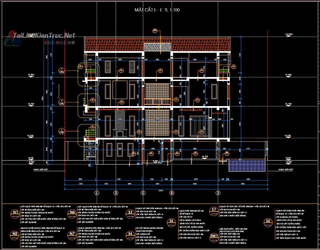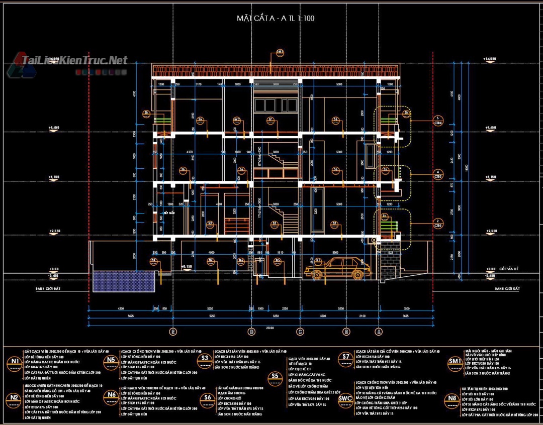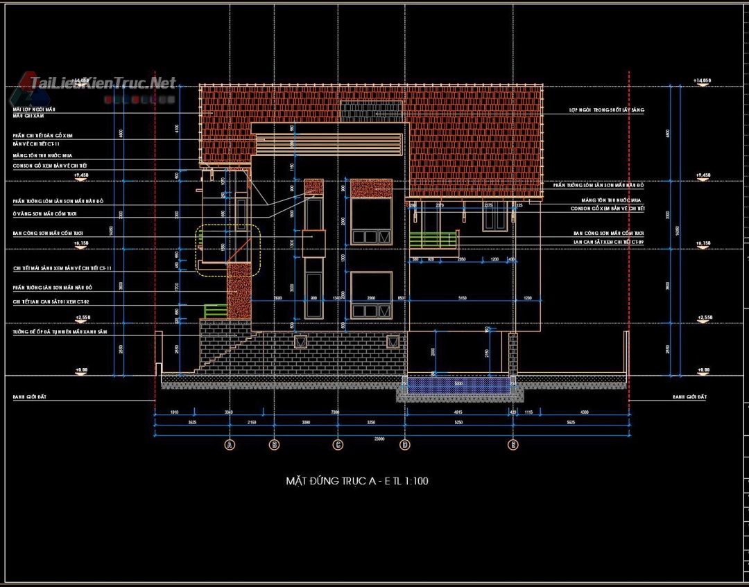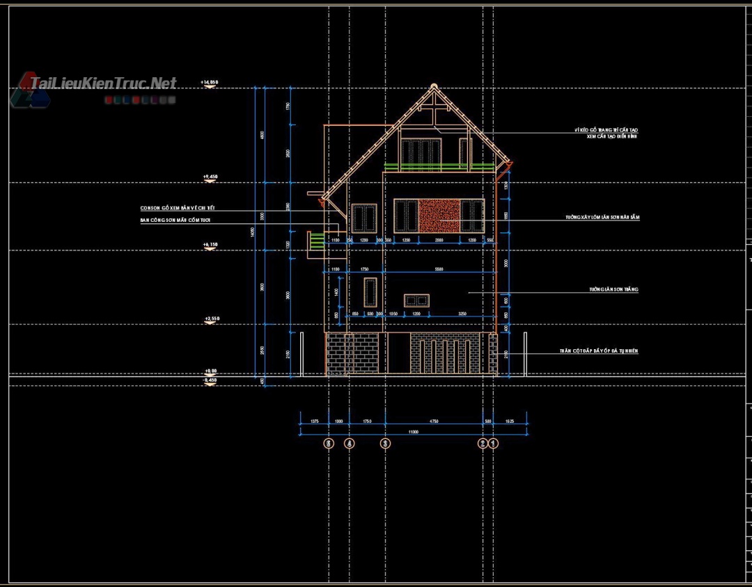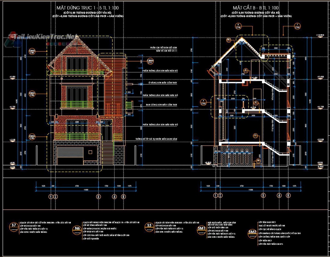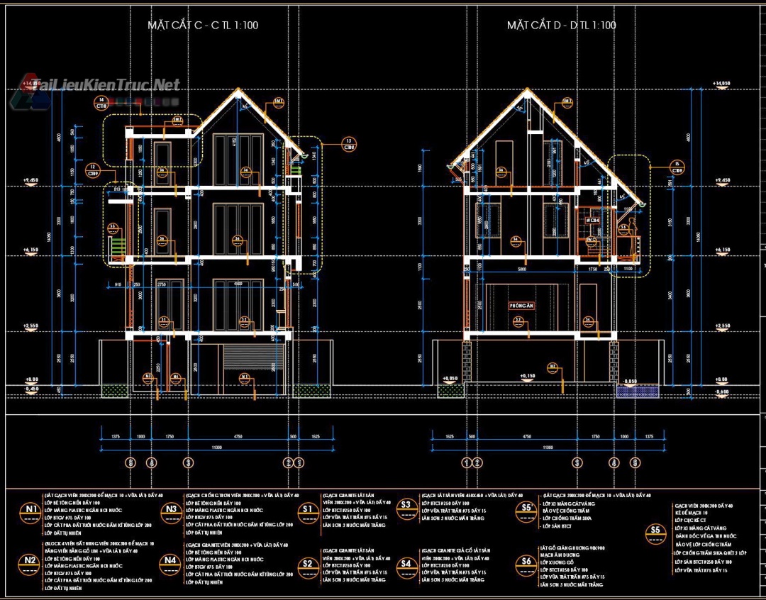 Hồ sơ thiết kế biệt thự 11x23m 3 tầng nó có đầy đủ các bản vẽ chi tiết Kiến trúc