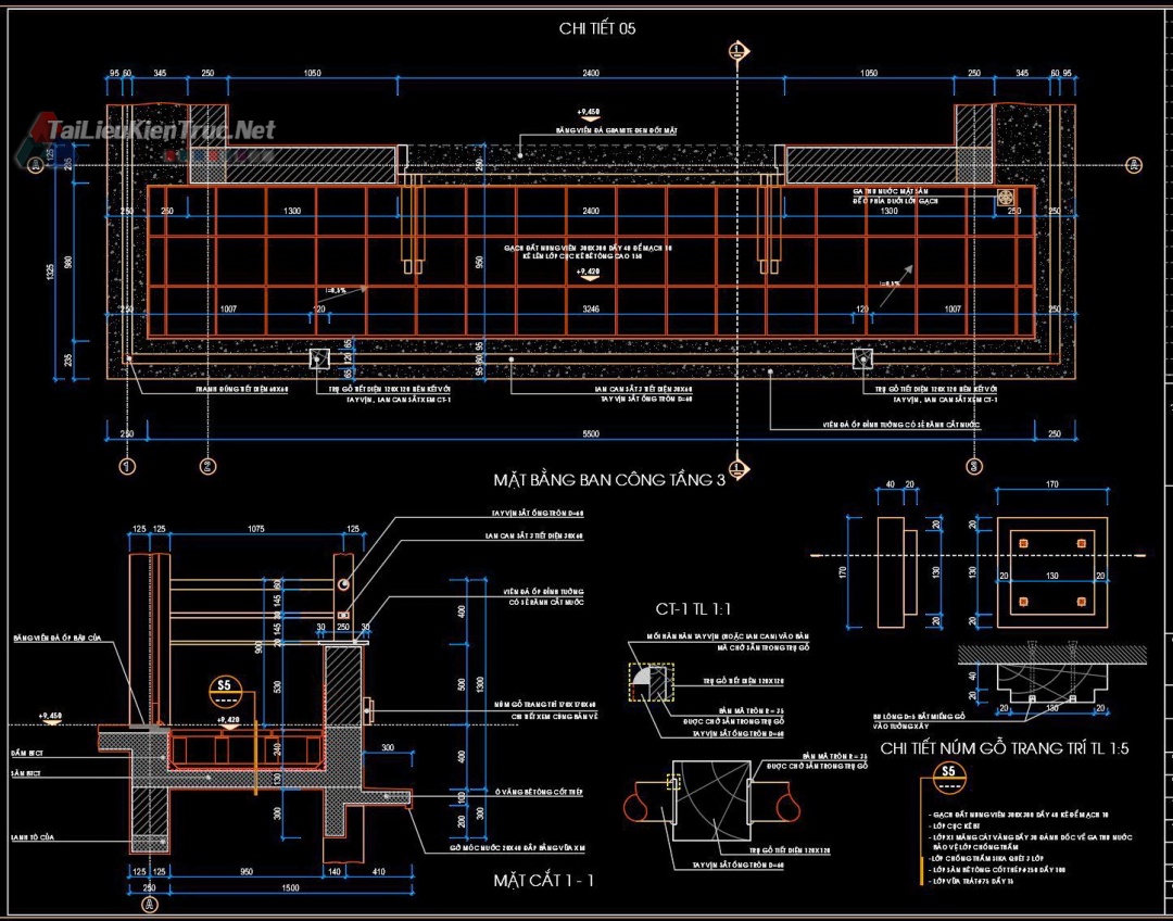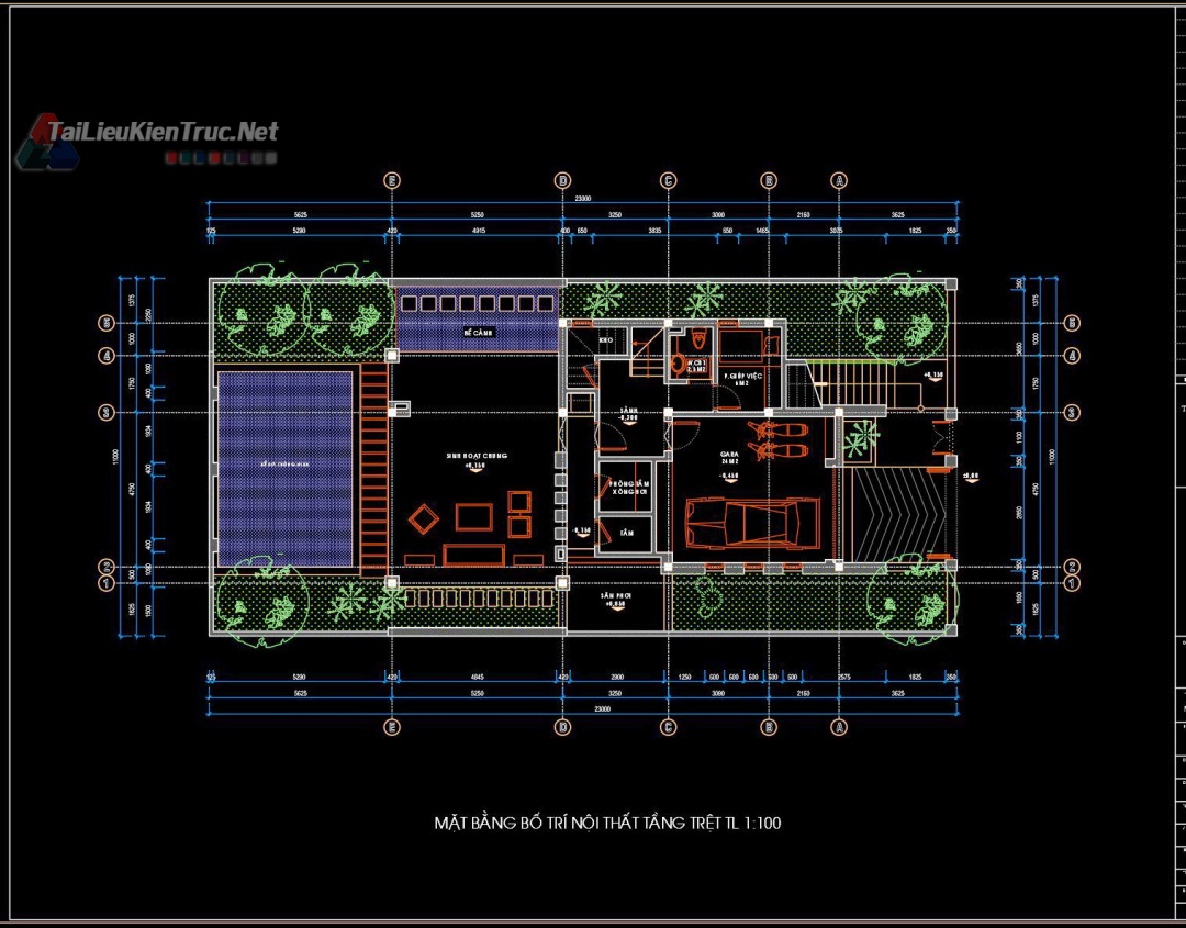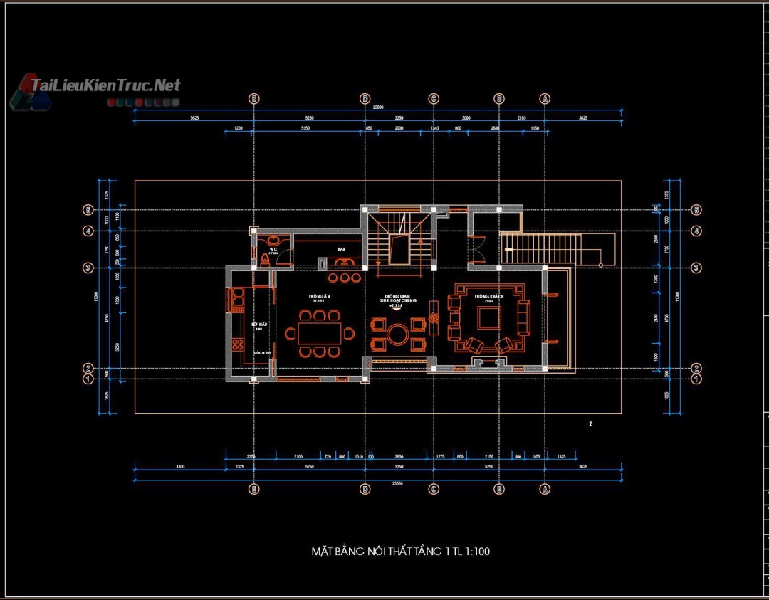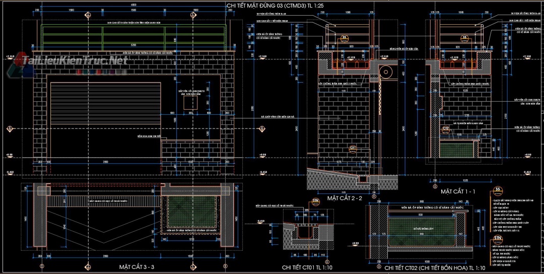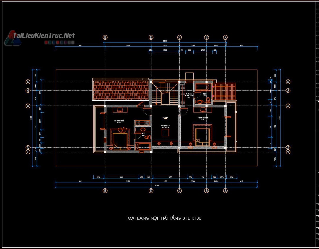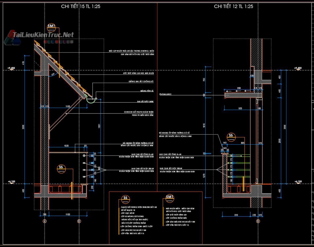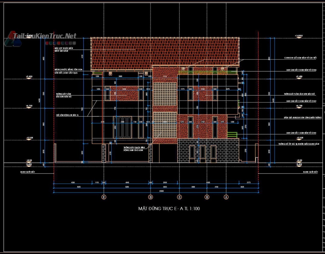 Hồ sơ thiết kế biệt thự 11x23m 3 tầng nó có đầy đủ các bản vẽ chi tiết Kiến trúc
